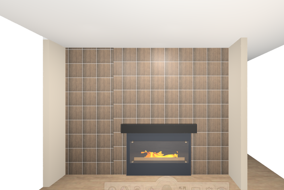 wood slat fireplace wall in a sexy bedroom