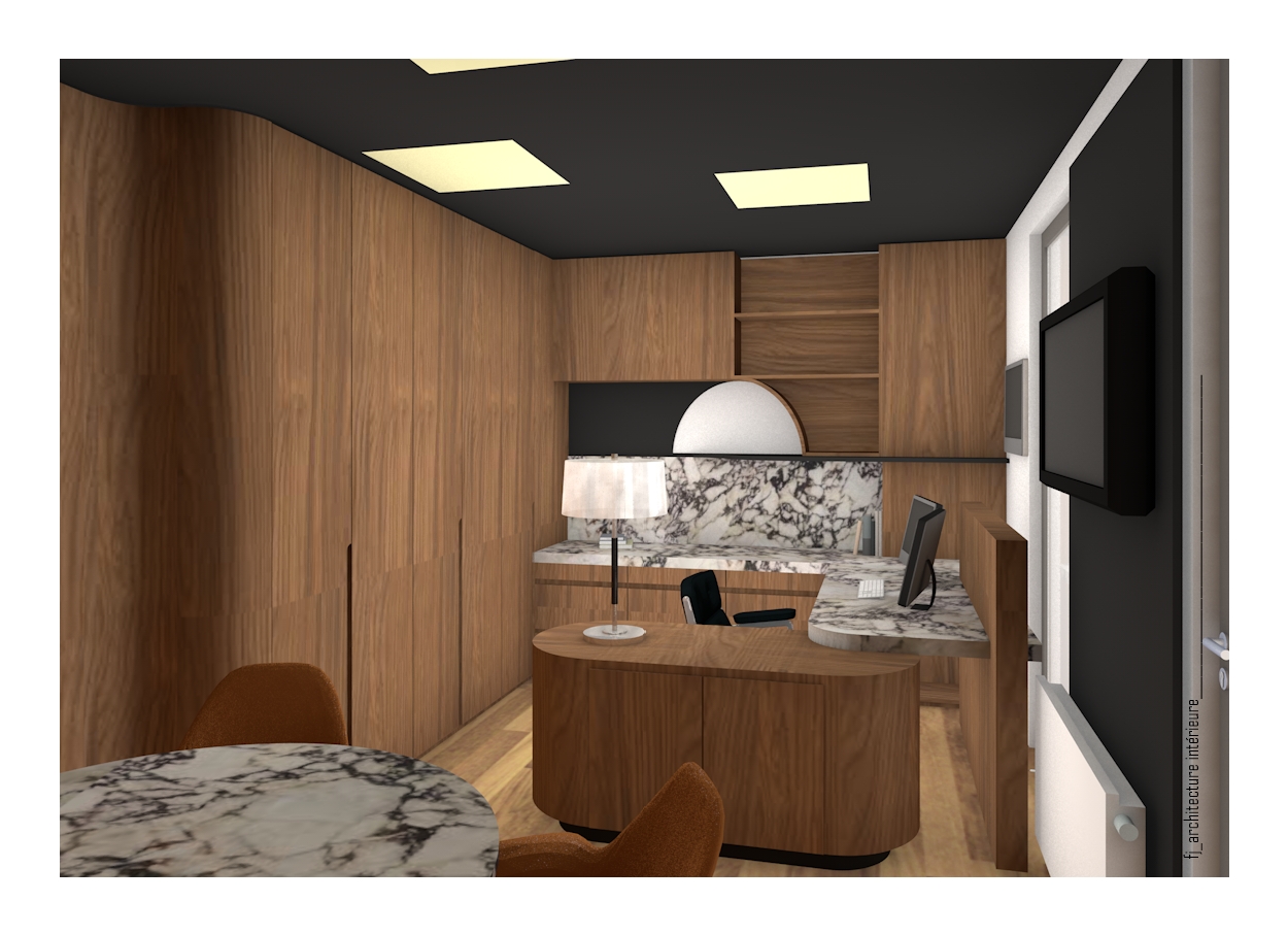 espace bureau mobilier bois h1386 plan de travail calacatta viola