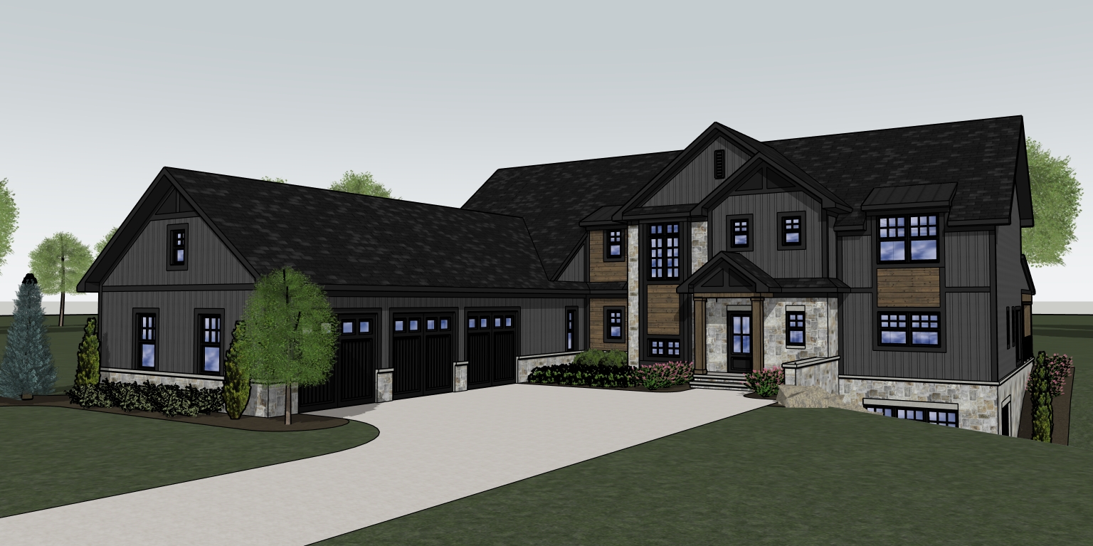 partly cloudy sky deciduous trees in background poured concrete driveway add gutters and downspouts