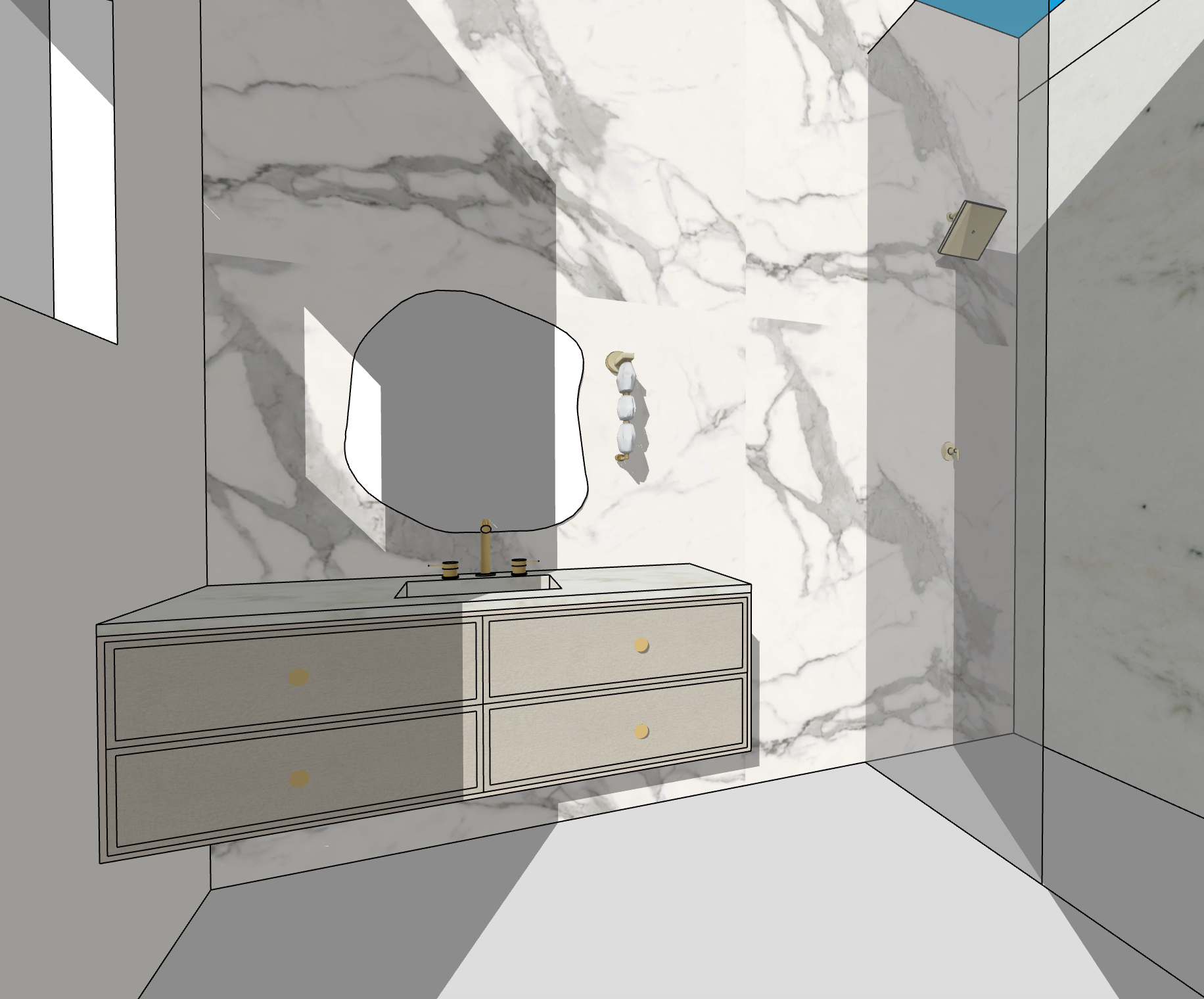 make the base of the vanity a light ivory beige linen material and make the mirror led