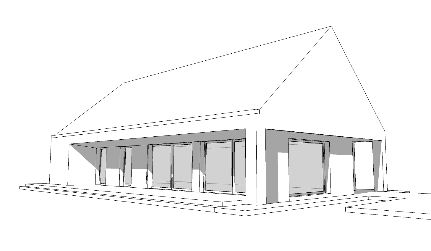 exterior shot render from a hand drawn sketch of a modern single family house in the beskid mountains of poland exterior clad in dark charred brown wooden siding using the japanese shou sugi ban technique roof finished with standing seam sheet metal in a neutral gray color recessed wall sections finished with light beige sandstone cladding large terrace made of natural oak wood planks featuring a small freestanding metal fire pit behind the house a wooden hot tub balia with a panoramic view of the beskid mountain range the plot slopes gently downward about 10 in the direction of the view natural daylight realistic textures high resolution photorealistic style