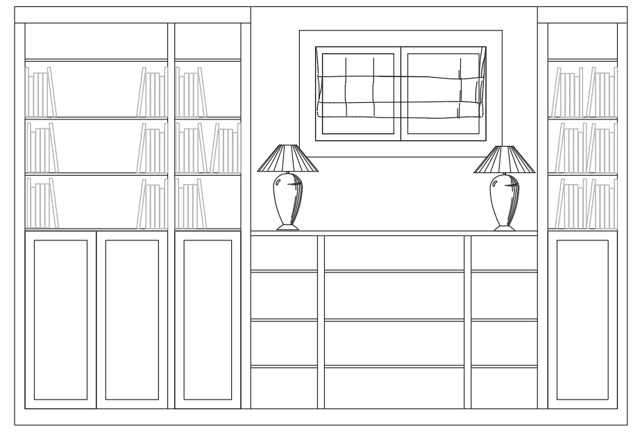 detail shot make the bookshelves a powder blue and add some mid century modern with lots of books