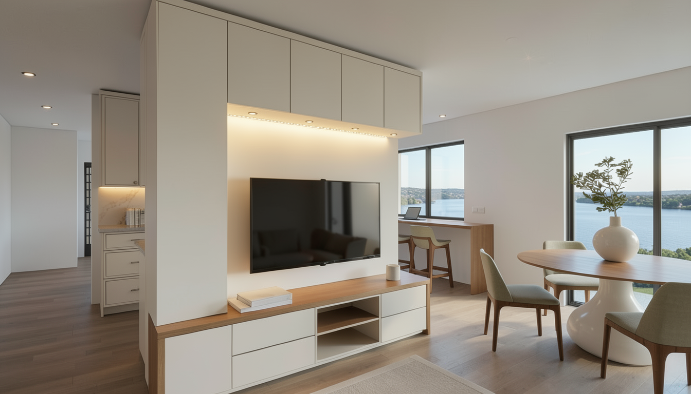 keep all the original materials and accessories do not add any new object the rectangle on the left is a mirror