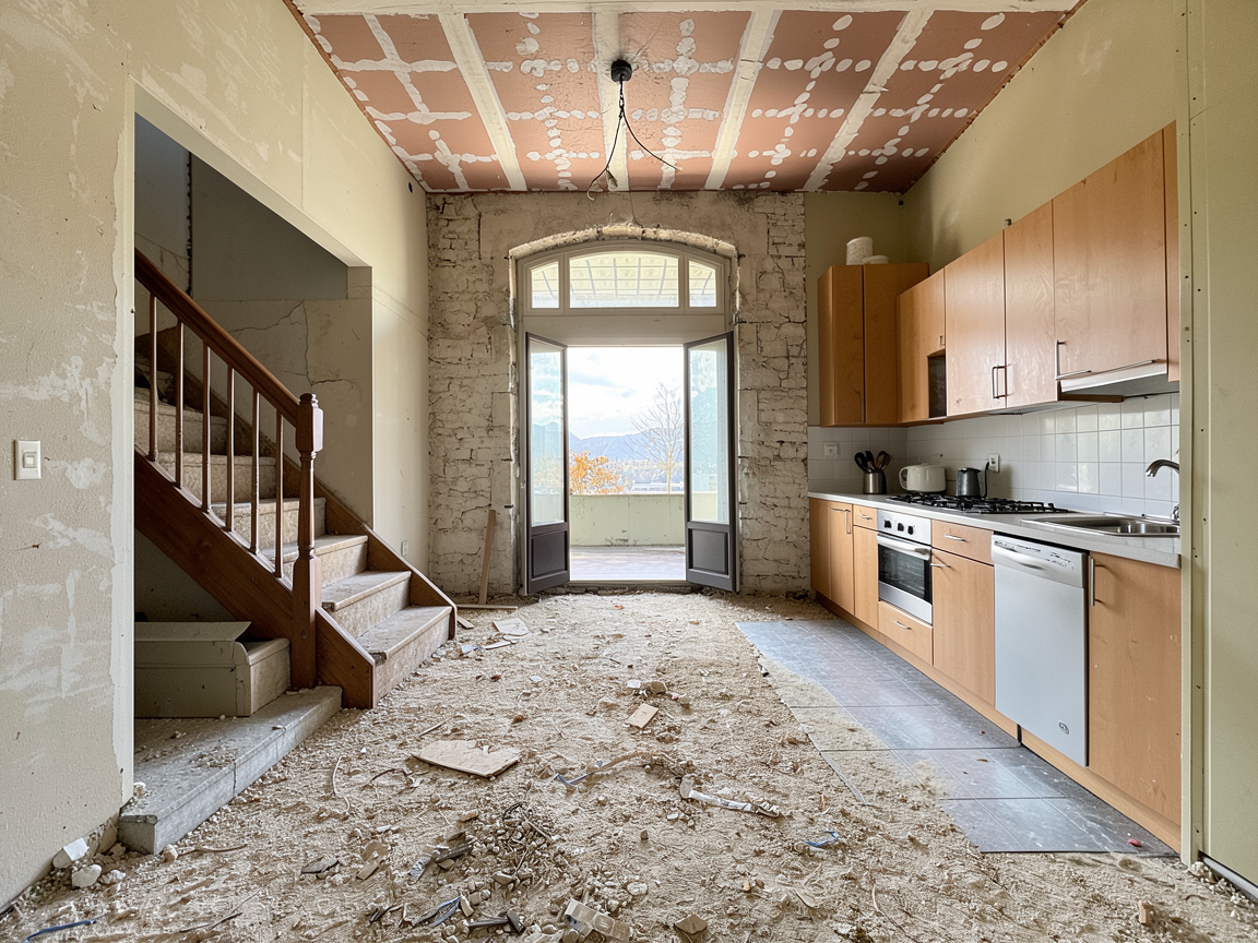 bauhaus interior shot realizza l immagine di un soggiorno la stanza ha un un muro inclinato nel muro inclinato che una finestra l altezza della stanza 270 la finestra indicata con un rettangolo blu ed alta 240 rispetta la posizione della finestra da quella finestra posso accedere al terrazzo architecture