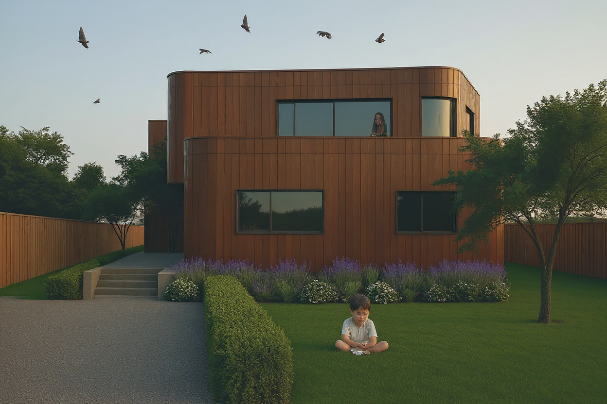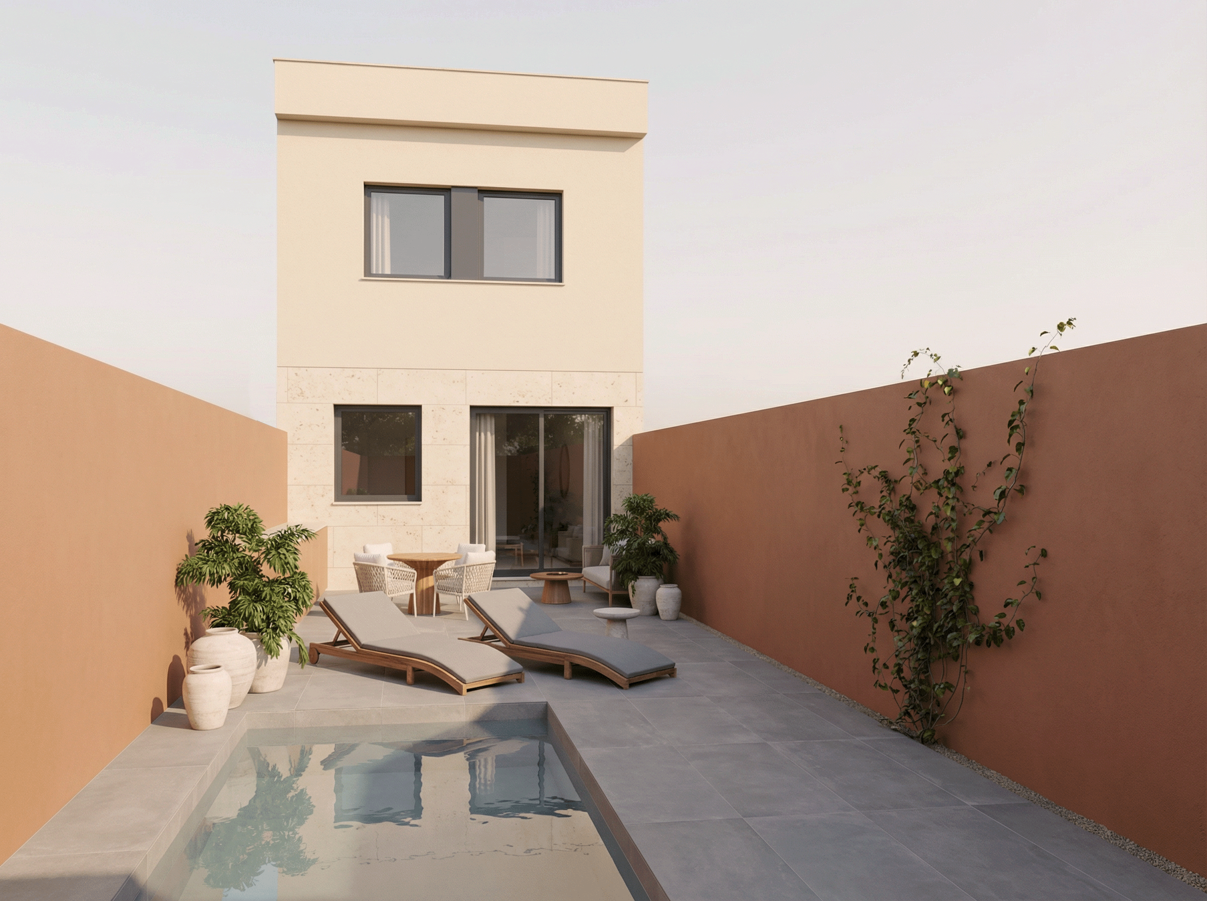 image edit only prompt archsynth use the uploaded image as a fixed base image this is a color edit only not a redesign and not a re render allowed changes only these add 2 or 3 wall exterior lamps on the terracto walls only small medium size black metalic with soft diffused light