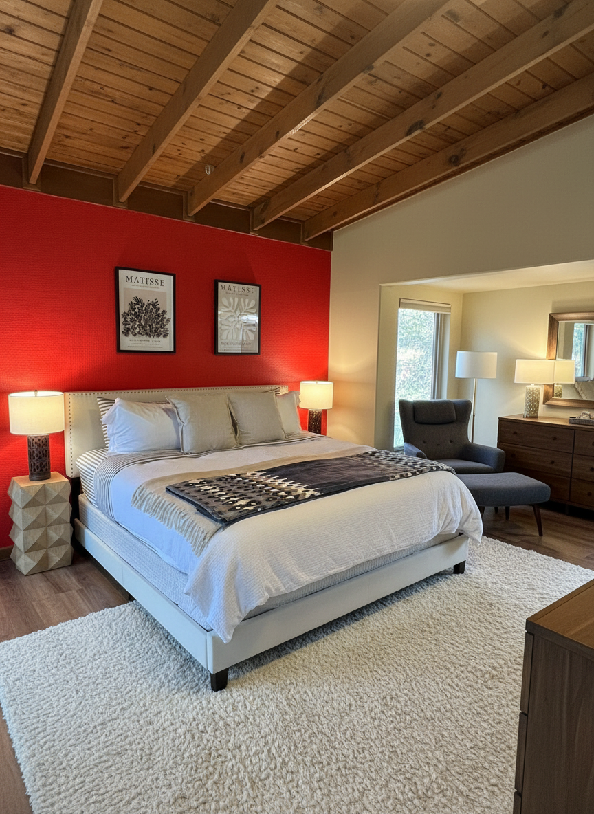 this is a living room for the referenced render image i want a nice electric fireplace on a stone facade and tv recessed in add lighting maintain windows wall color to be light keep layout