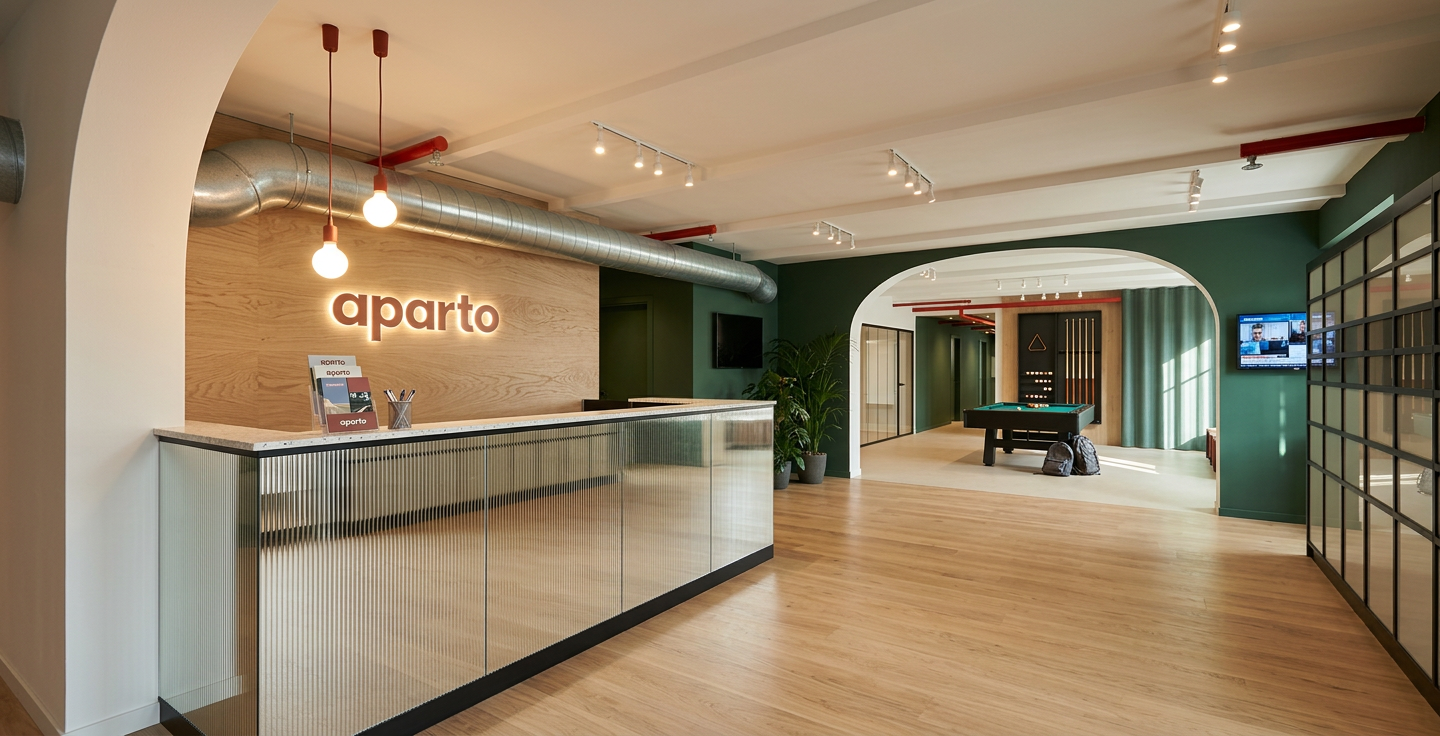 a modern minimalist library design dark oak flooring and matching ceiling complements black wood cabinet that have no lighting within them with a matt black fossil wood desk top and soft seating and the chaise with soft dark beige leather the design the atmosphere is calm and relaxing accented by lush green hydrangea plant outside the window with lighting that is soft and natural creating a relaxing atmosphere