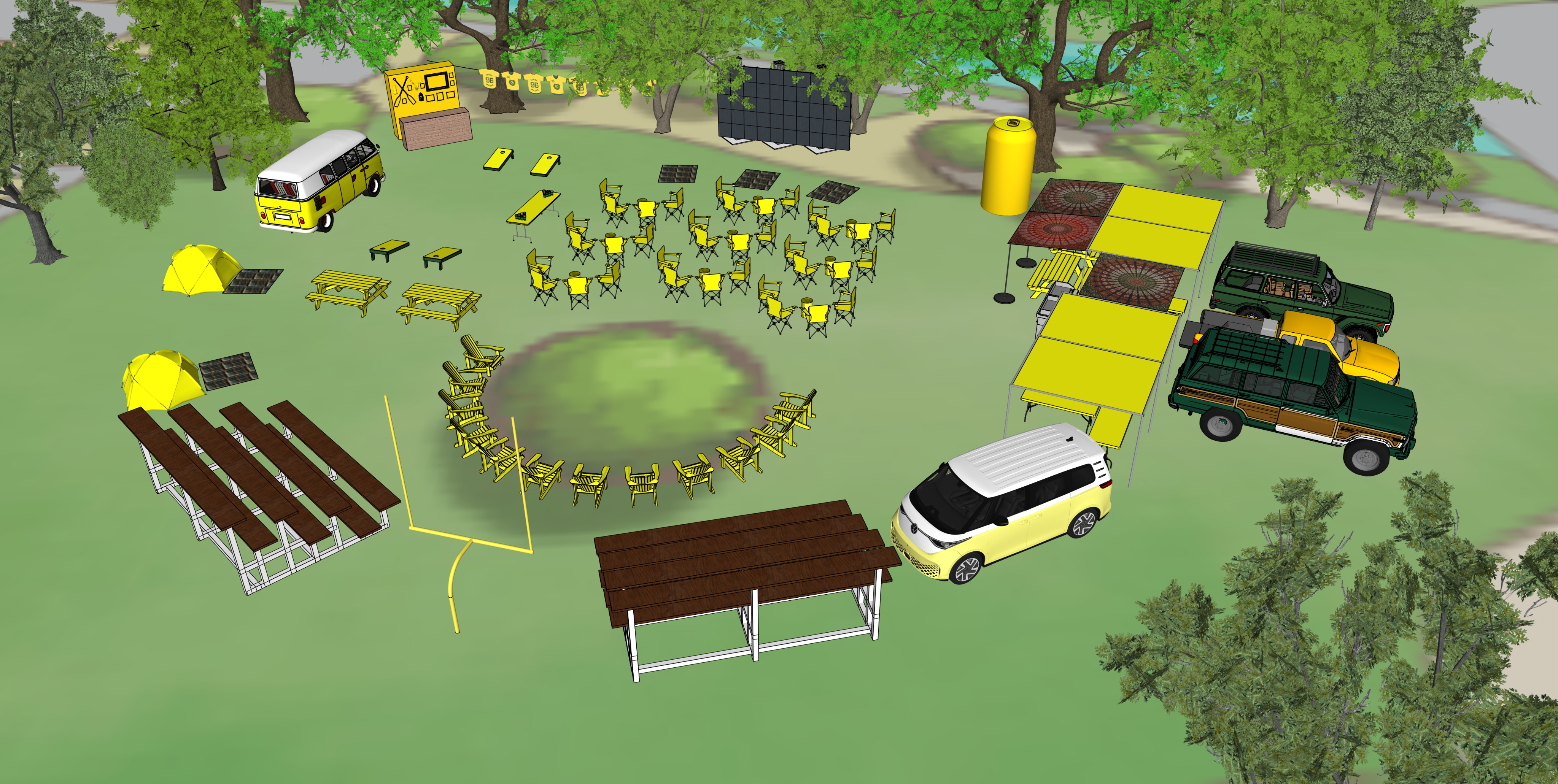 setup up this tailgate event in the woods set at oak canyon ranch in california set in deep oak trees make the surrounding area lush with lost of foliage
