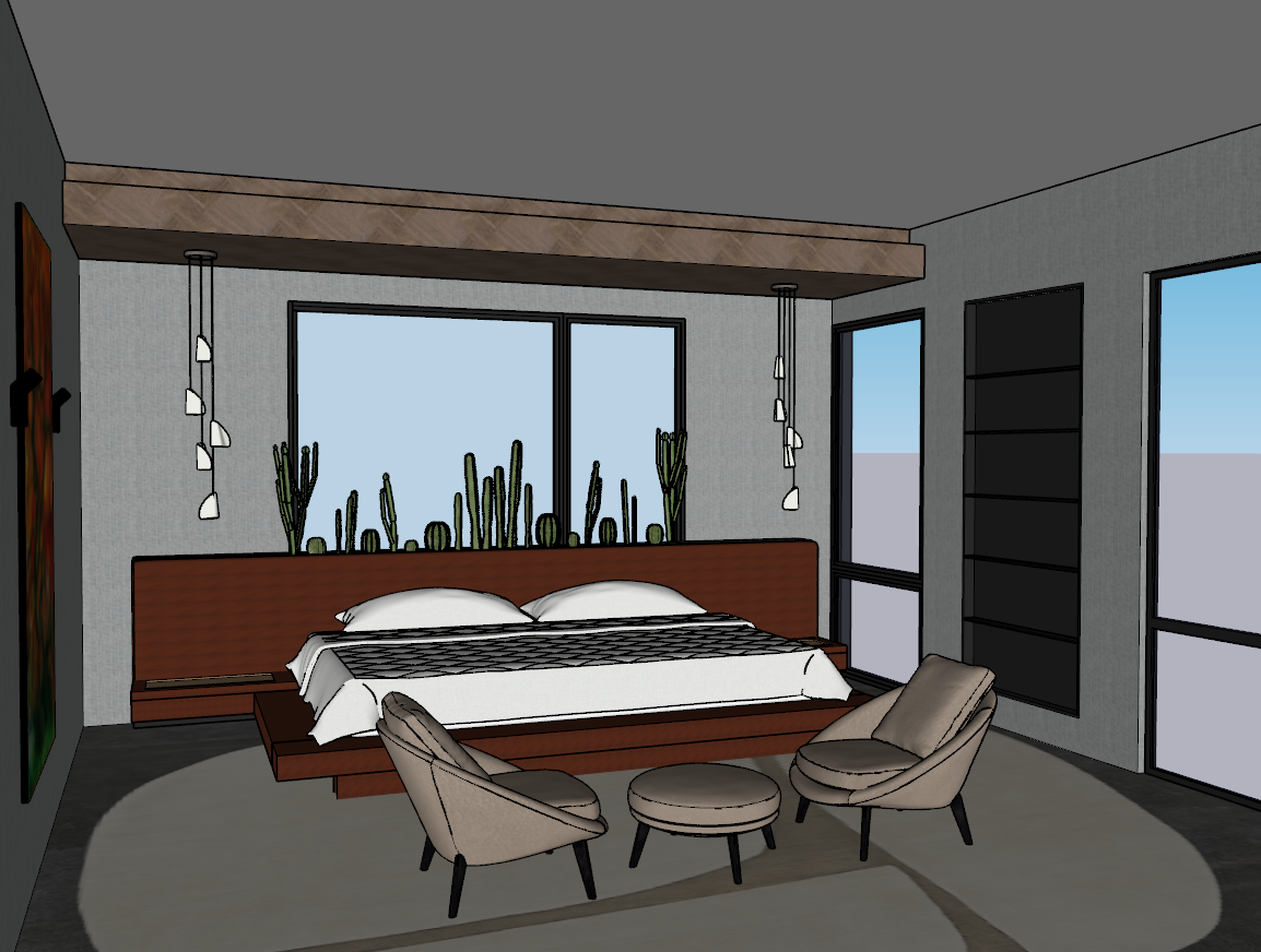 keep colors materials and shapes as original the bed is upholstered terracota change the chairs back to the original color and nothing else