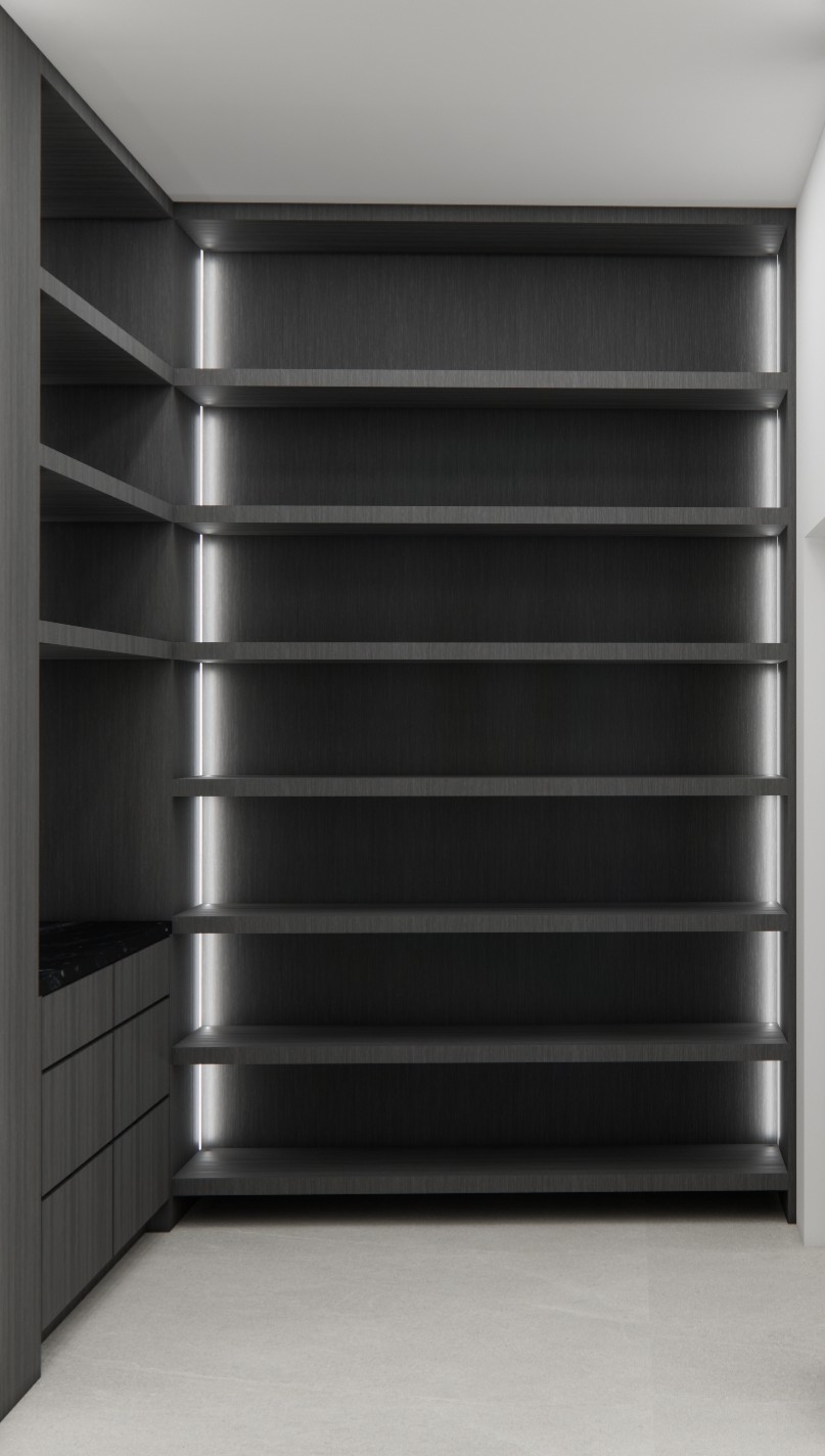 create a hdri photo realistic rendering do not change any image details do not move or modify features the cabinet should be a deep ash black color and the cabinets should not have any hardware