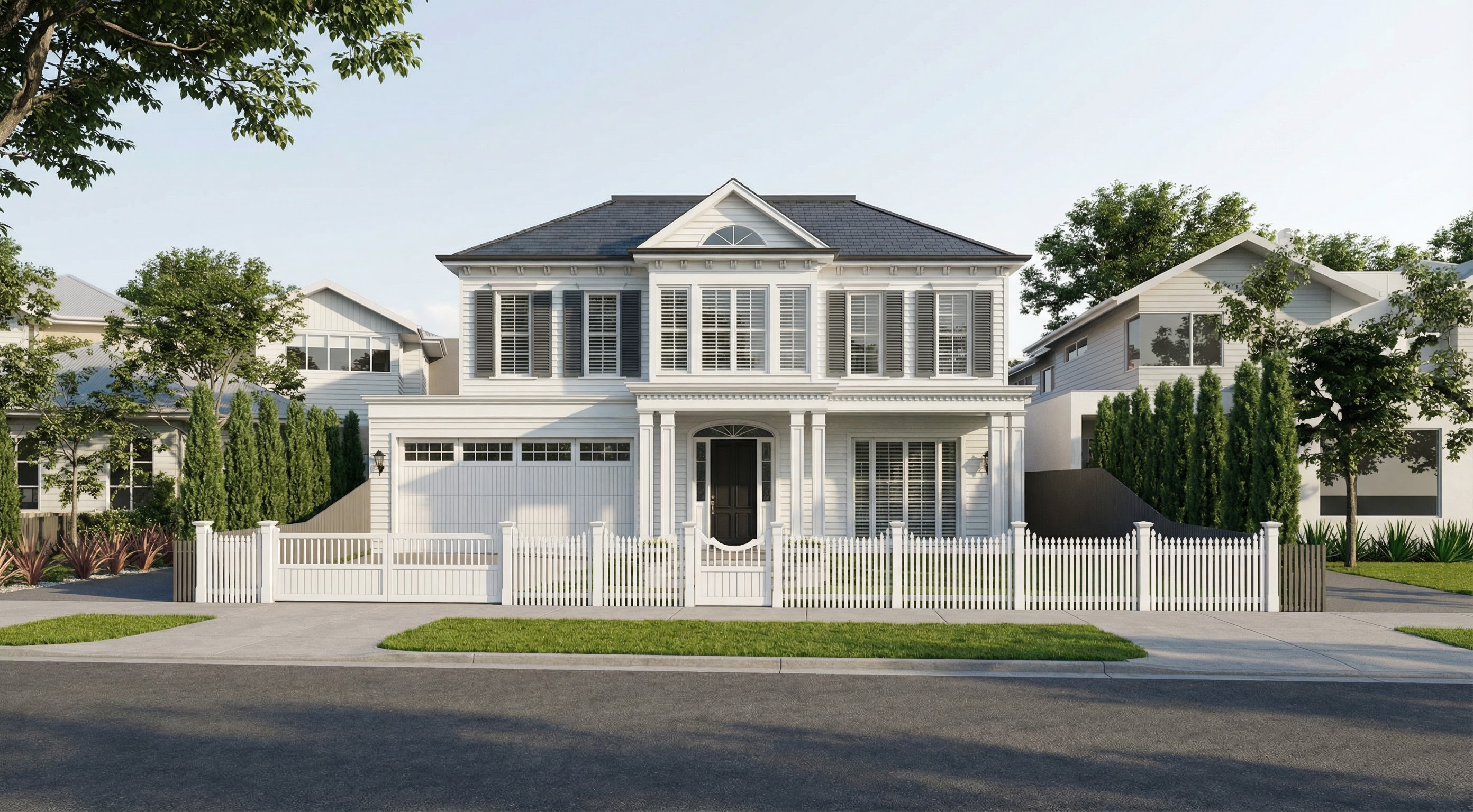 use the exact building shape i provided and add finished with precast for the whole tall part of the building black metal siding and brick for the short part in the front