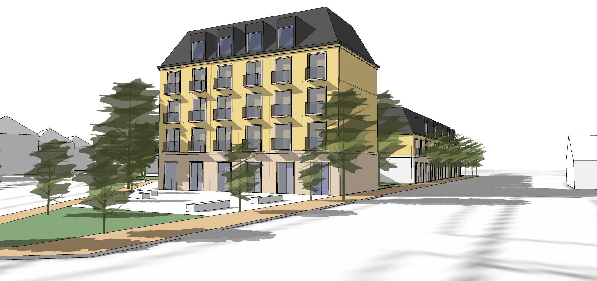 nordic exterior shot keep building as close to original as possible it is a brick building a cafe in the ground floor architecture