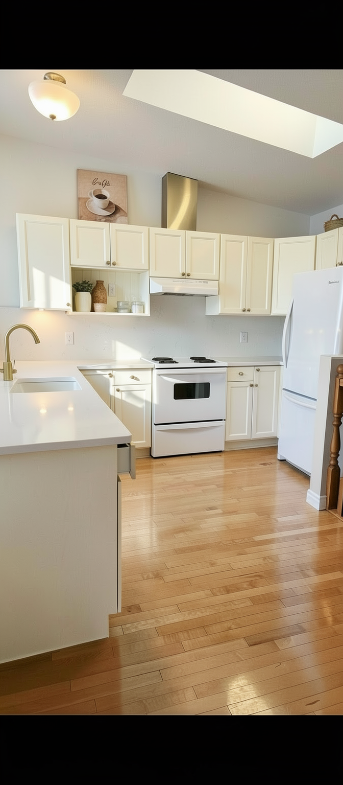 off white quartz countertop brass facet white painted walls
