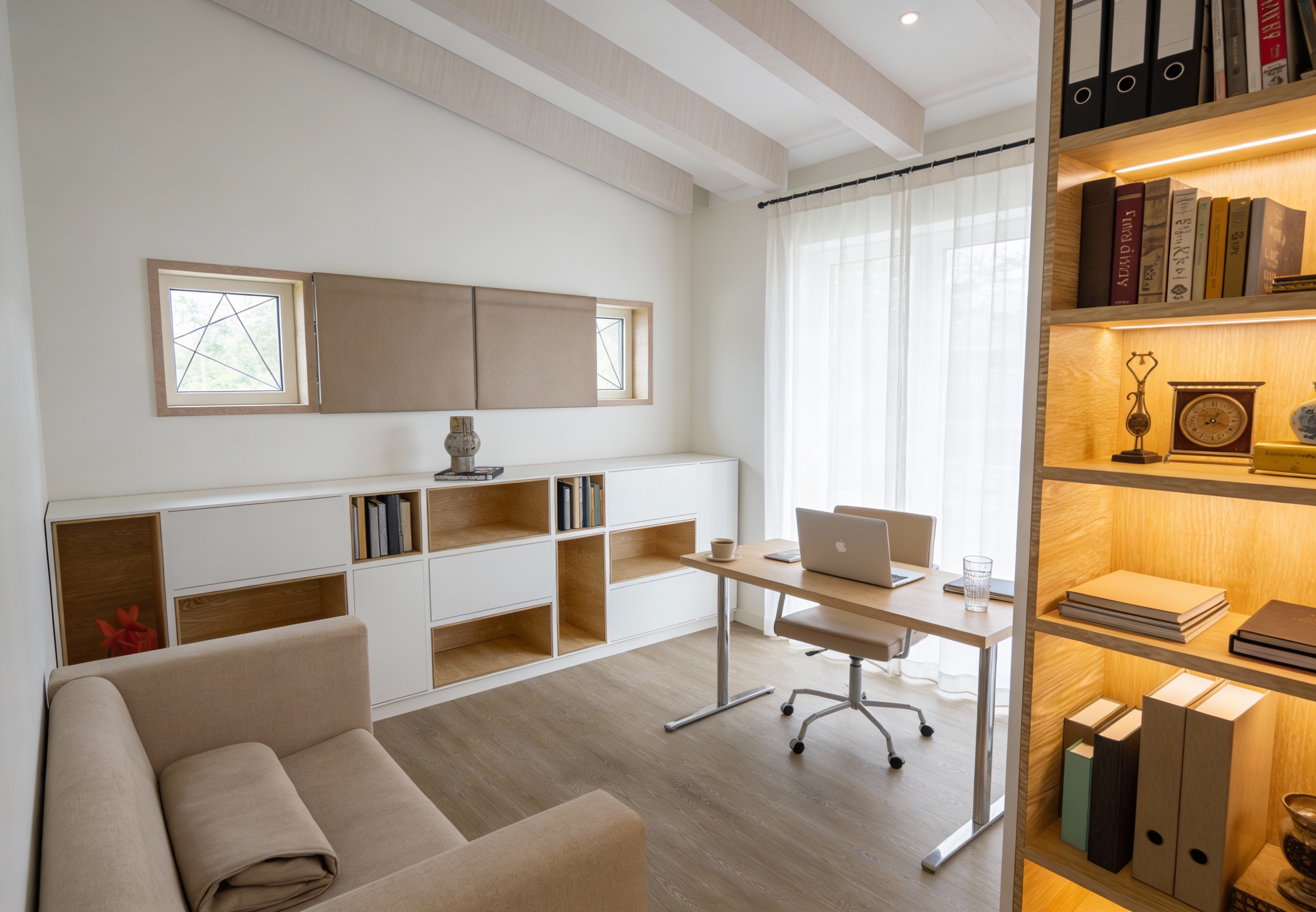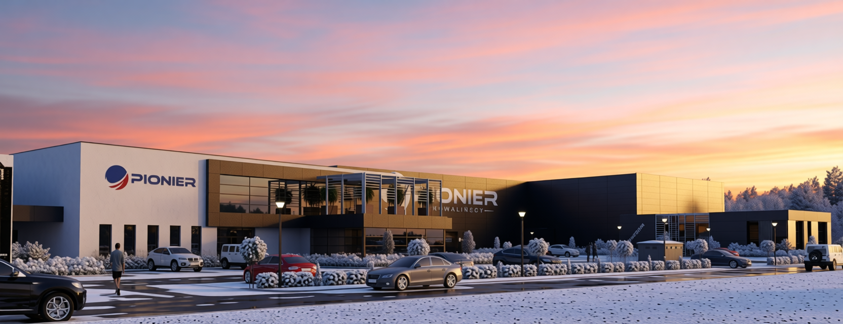 modern farm house white siding black windows gray shingle roof blue sky with clouds green lawn premium lanscaping architecture