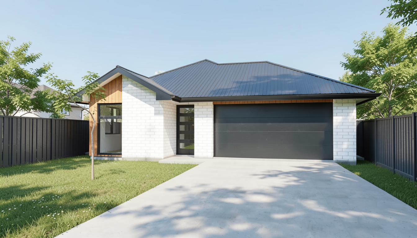 modernist exterior shot keep this image but separate the buildings by another 20 feet architecture