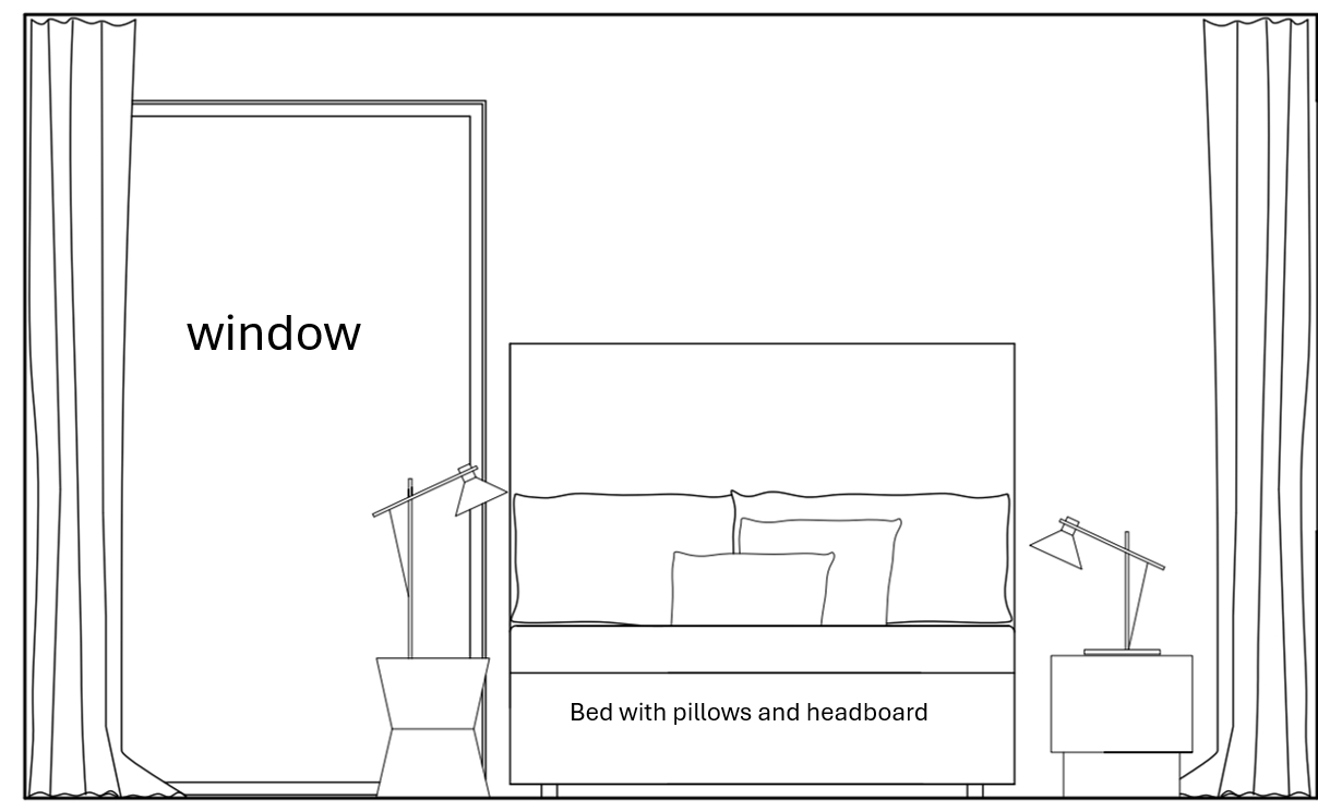 interior shot frame on the wall to the left should be a window and covered partly by the curtains garden view natural smoked oak parquet on floors
