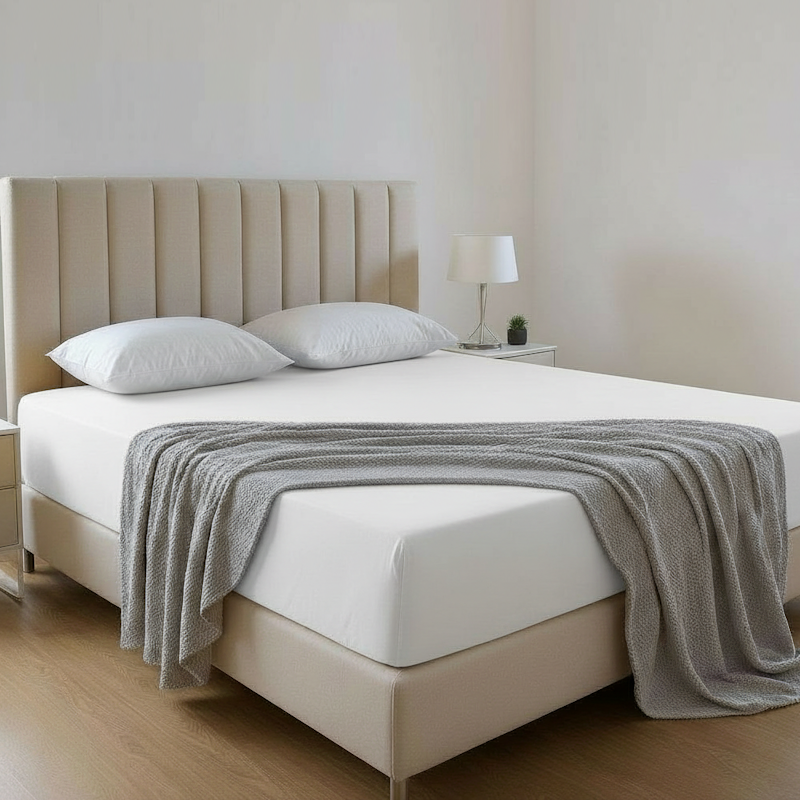 change the white sheet on the bed to a color code hexa 677f4e everything else should stay the same pillows are white