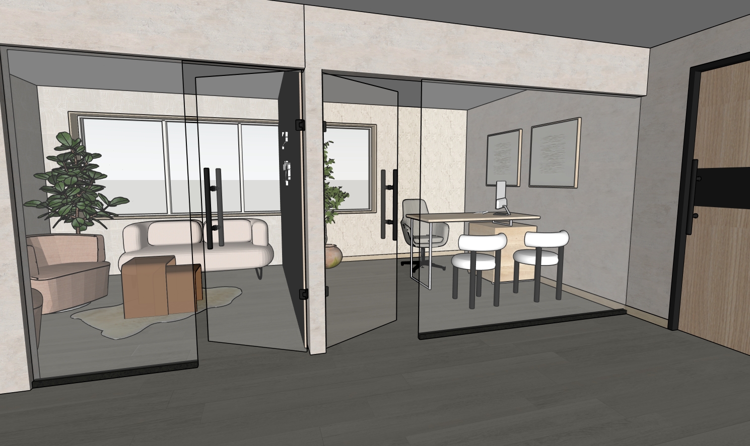 create a high resolution photorealistic render of this interior maintain the exact composition camera angle architectural elements and furniture arrangement do not change any walls windows fireplace openings proportions or furniture placement enhance all materials and finishes for ultra realistic detail improve texture clarity shadow depth light reflections and surface realism add soft natural daylight streaming through the windows combined with subtle warm artificial ambient lighting to enhance depth and atmosphere maintain the original design while upgrading overall lighting contrast and material quality for a refined lifelike result