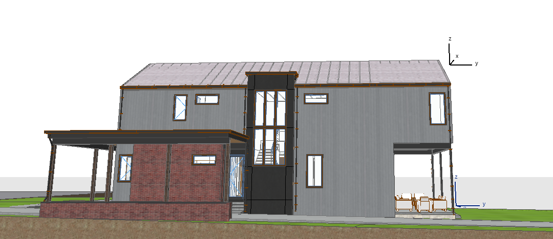 make house look realistic forest around the house concrete driveway to be on the right side of the house grey finish on house is wood vertical siding