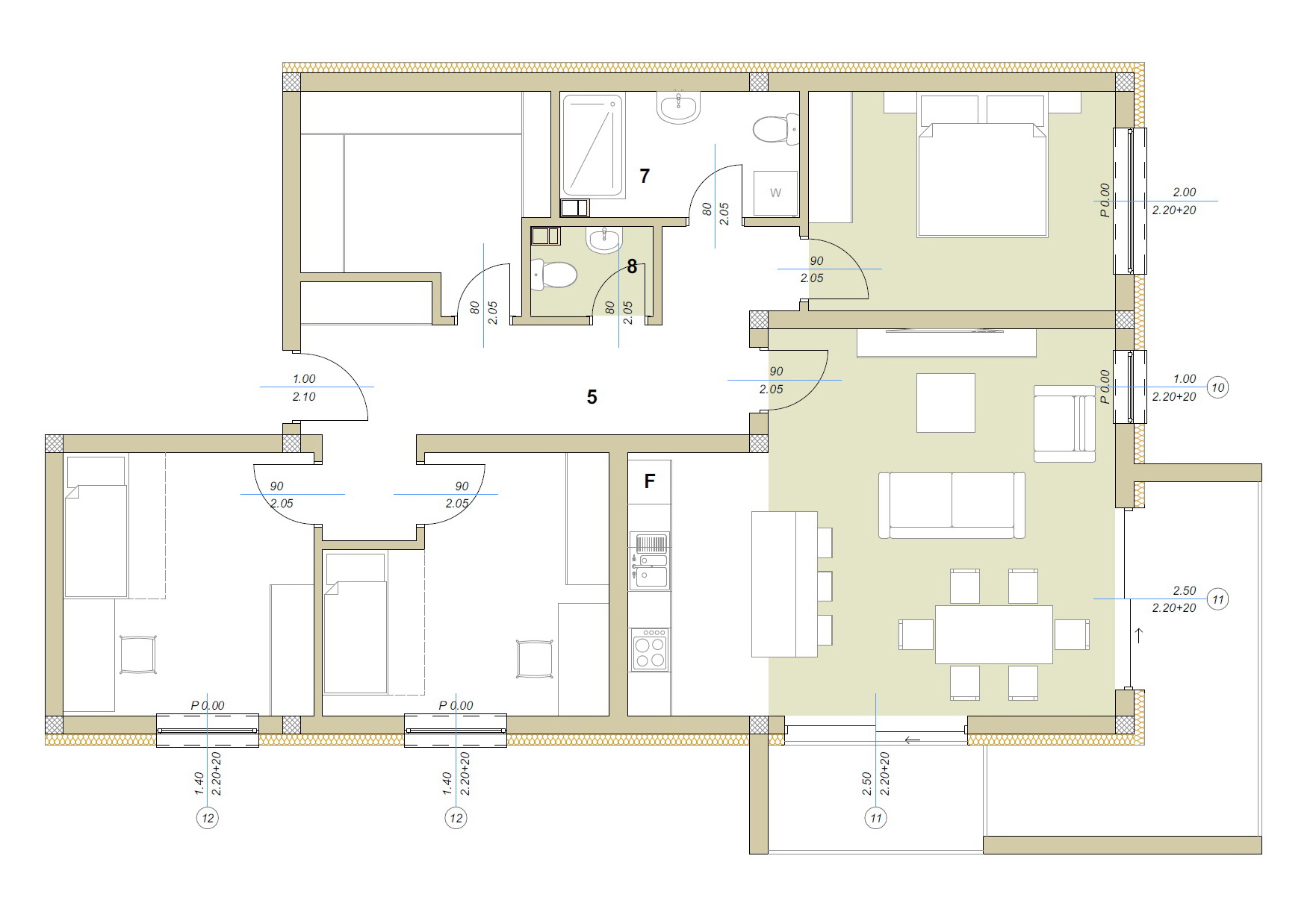 isometric 3d floor plan generated from the provided apartment layout maintain correct proportions and room layout low wall height visible furniture modern minimal interior design soft daylight clean white background architectural visualization real estate presentation
