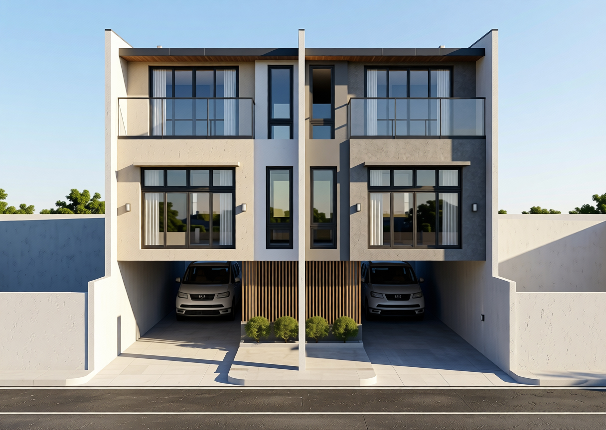 maintain building facade colors do not change model and finishes texture in the building subdivision area with neighbours nightime do not change the design of the gate and fence maintain lighting fixture do not add any lights anymore