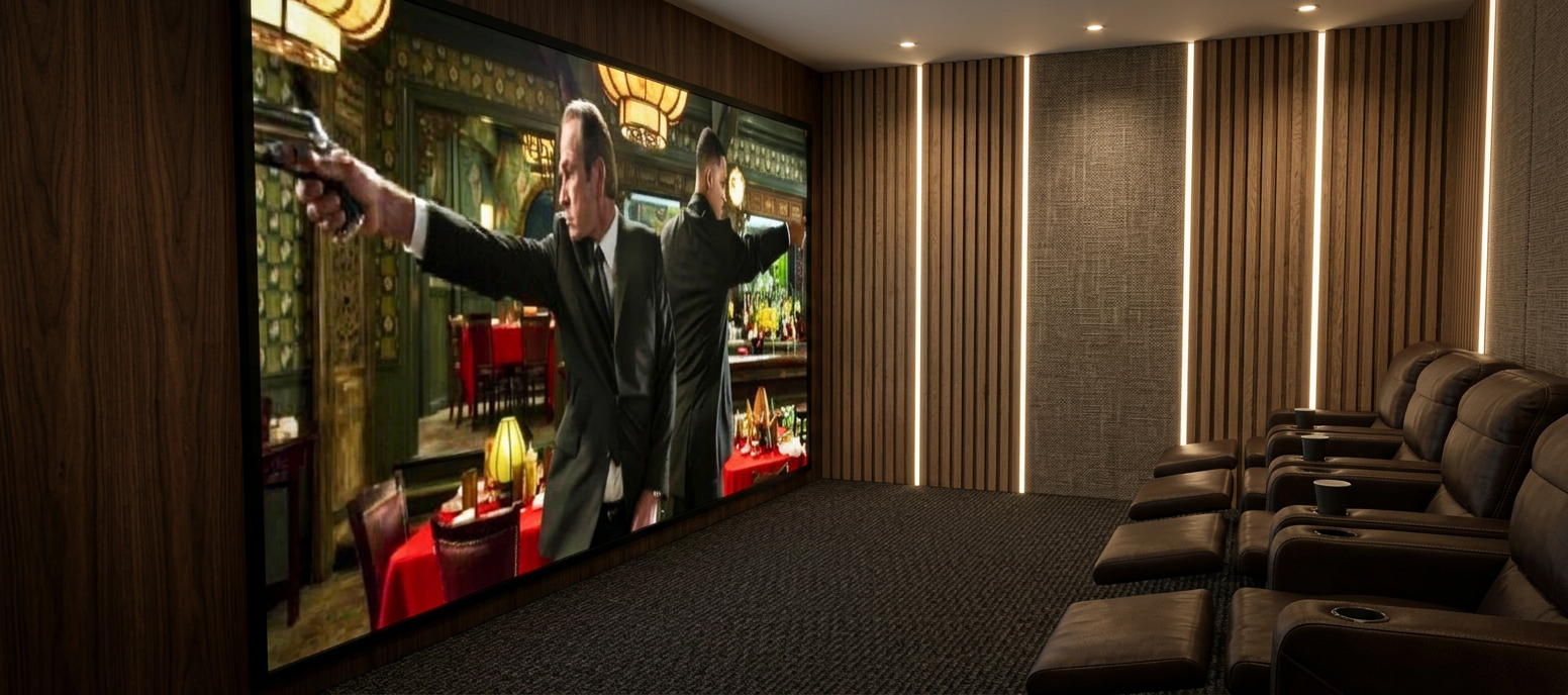 remove the lanterns there should be four floor to ceiling led strip lights illuminating the room along with dimly lit ceiling recessed lighting take the wood paneling out around the movie screen restore the single strip of olive green wallpaper