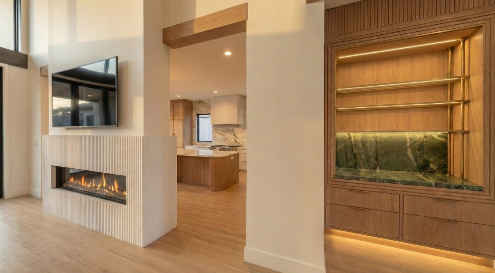 have the cabinets on the right hand side go all the way down to the top of the baseboard and have a toe kick light