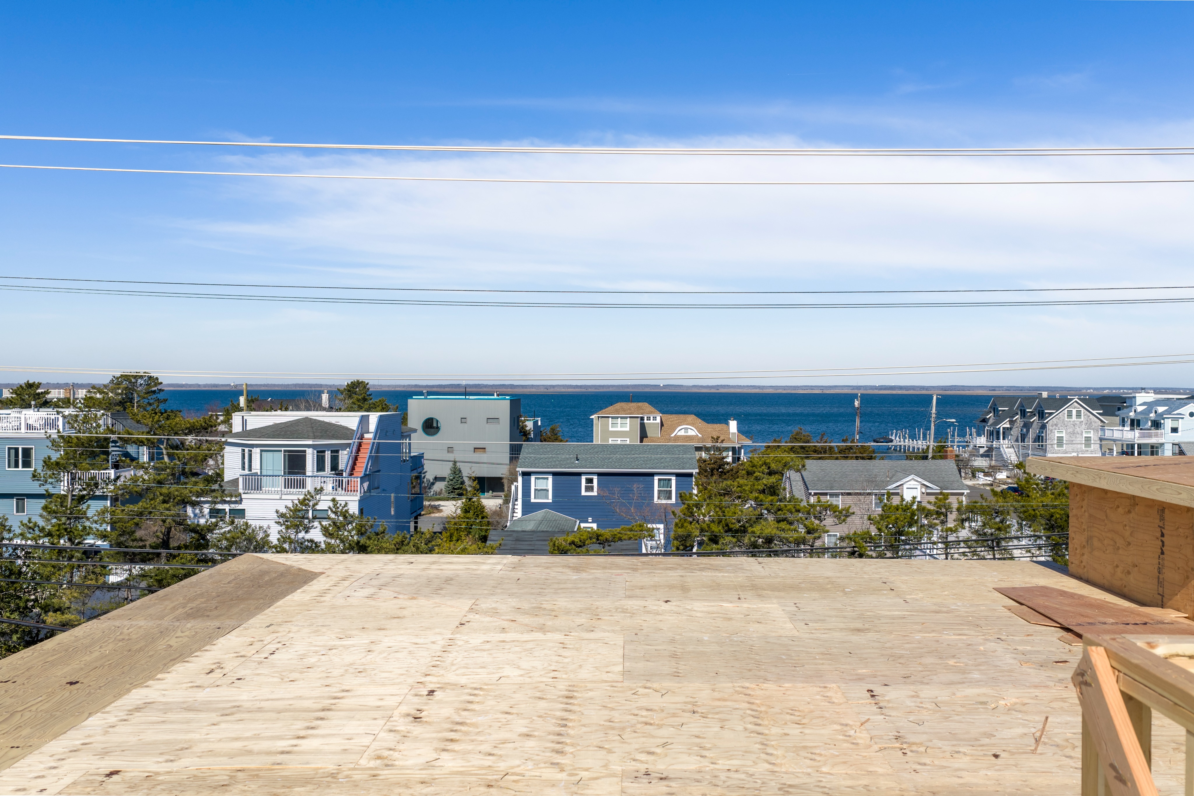 ultra photorealistic exterior scene from a deck viewpoint preserve the exact camera angle perspective and distant view beyond the deck with no changes do not modify the background landscape water sky or horizon in any way complete the unfinished deck structure add finished fiberglass decking surface and clean standard white deck railings with realistic proportions and spacing ensure proper alignment and construction details add minimal high end rooftop deck furniture such as modern outdoor sofas with neutral cushions arranged naturally without blocking the main view maintain open sightlines so the view remains the focal point match lighting and shadows to the existing scene consistent midday or natural daylight conditions physically accurate materials realistic fiberglass deck texture clean painted railings natural outdoor fabric materials real world imperfections subtle wear slight texture variation natural lighting inconsistencies photorealistic sharp high detail 8k no stylization no cinematic effects true to life colors strictly preserve the original background view only modify and complete the deck area keep the roof in the image