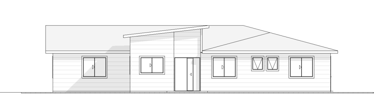 the facade should be weatherboard with paving for parking in front of house the front door should be double glass sliding door with only small shrubs and boundary walls on the side