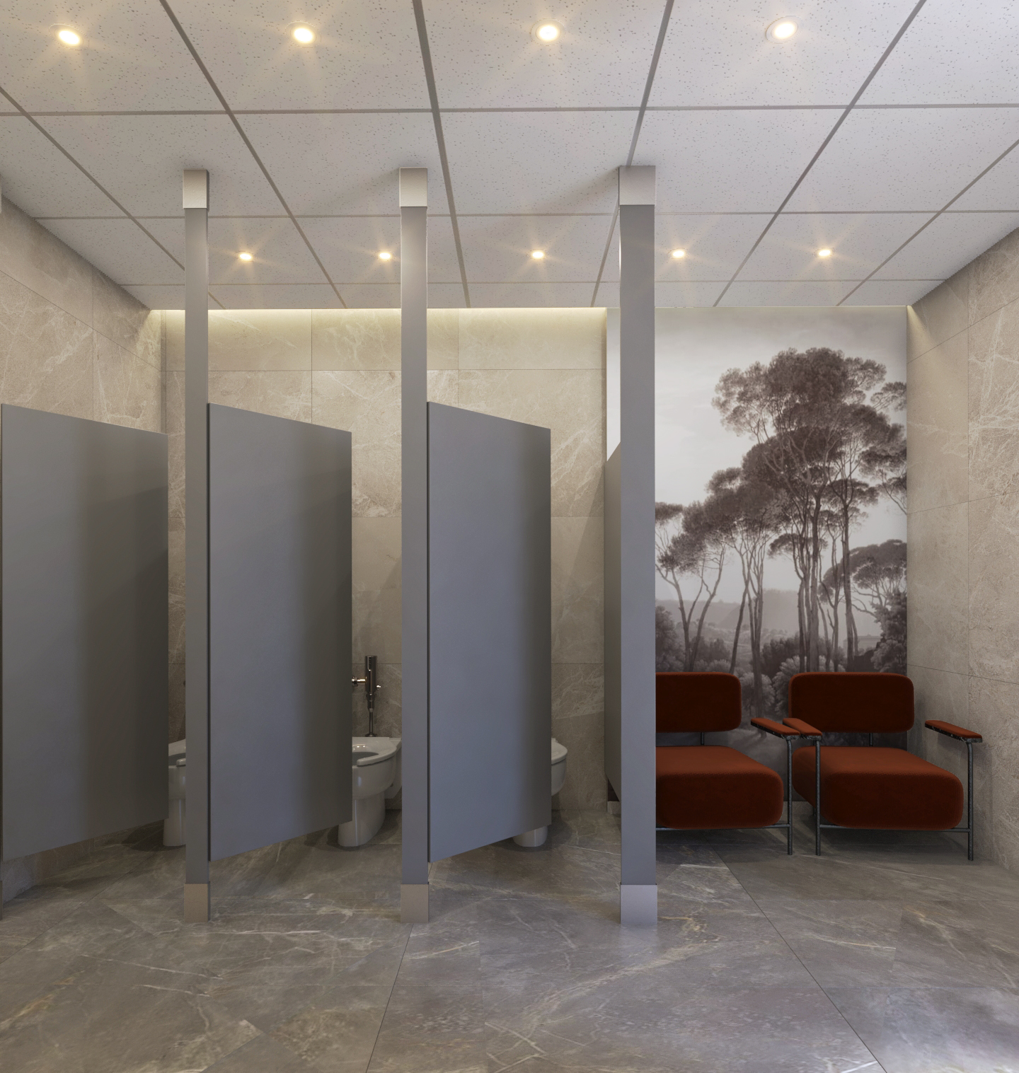 make this public toilet more real add 2 young ladies sitting at the chairs