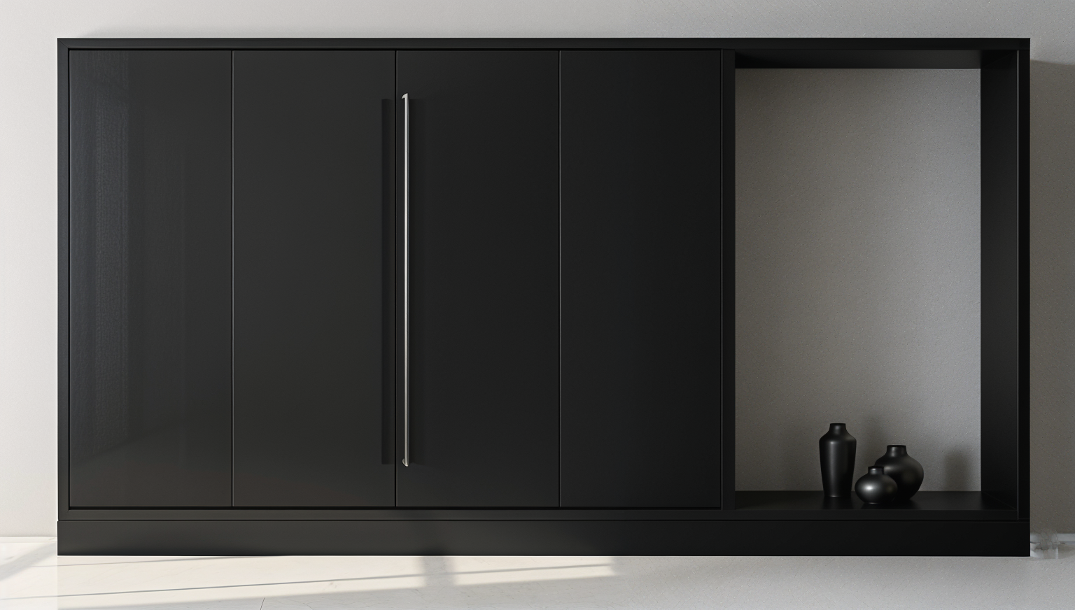 create angle view on this cabinet remove vases remove vertical lines from facades