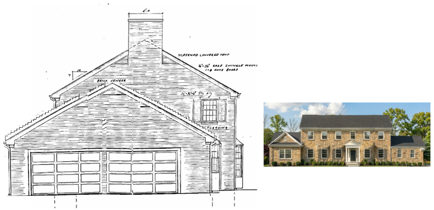 exterior shot make this elevation into a photo realistic rendering that looks like elevation given make it looks like the front of the house all brink architecture