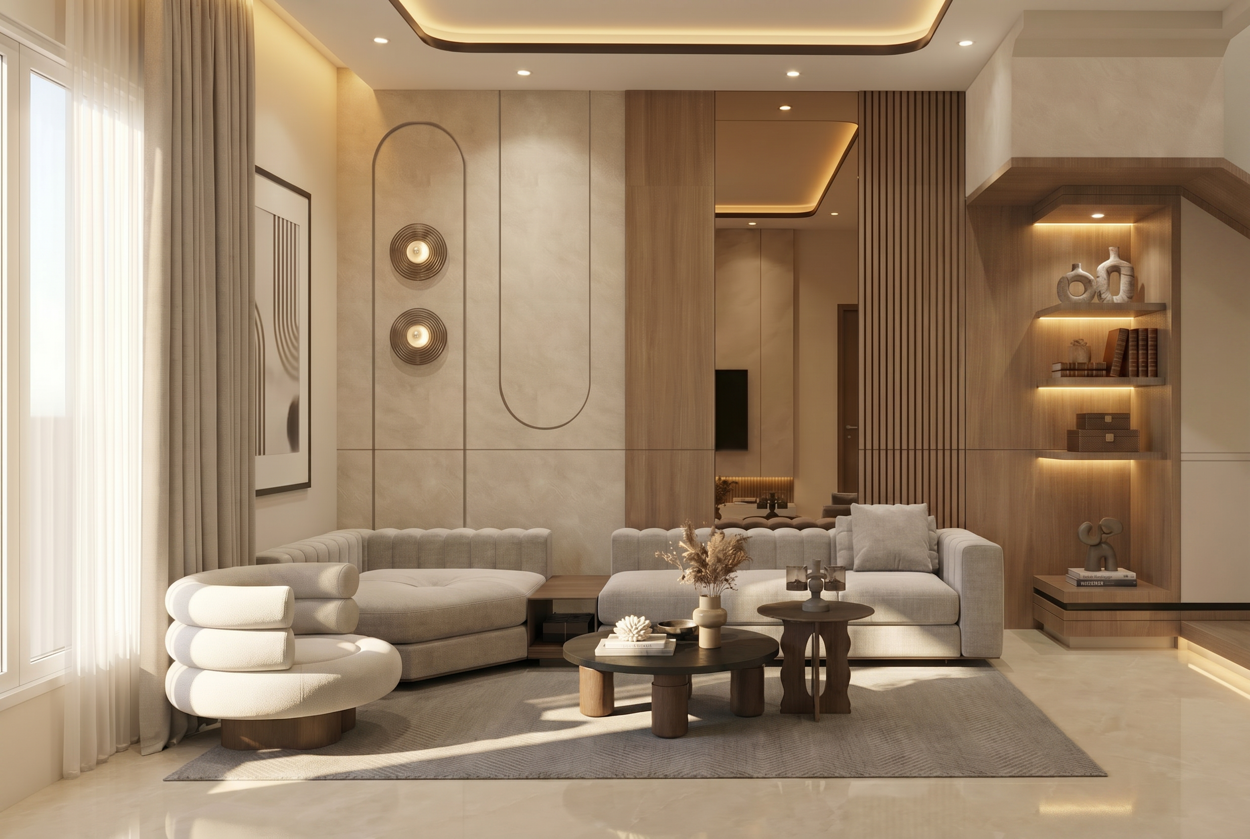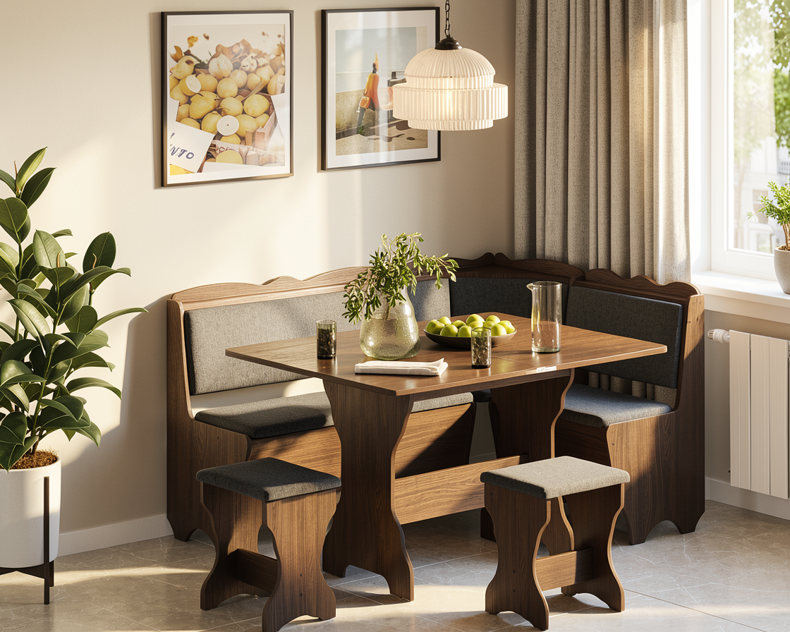 add one vaze with flowers on the table a plant near the door a carpet under the table and a chair at the back of the room behind the room separator