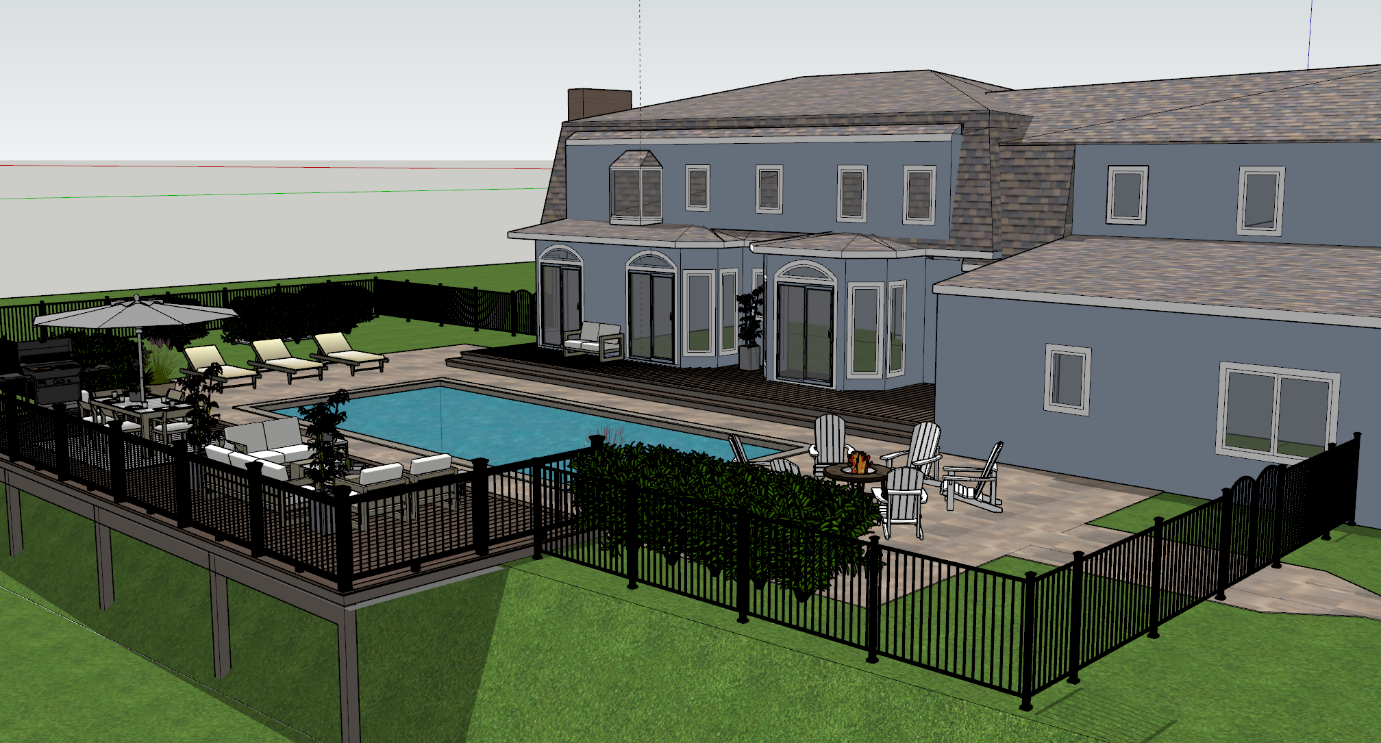 lush tree background double rounded fence on both ends paver patio brick chimney