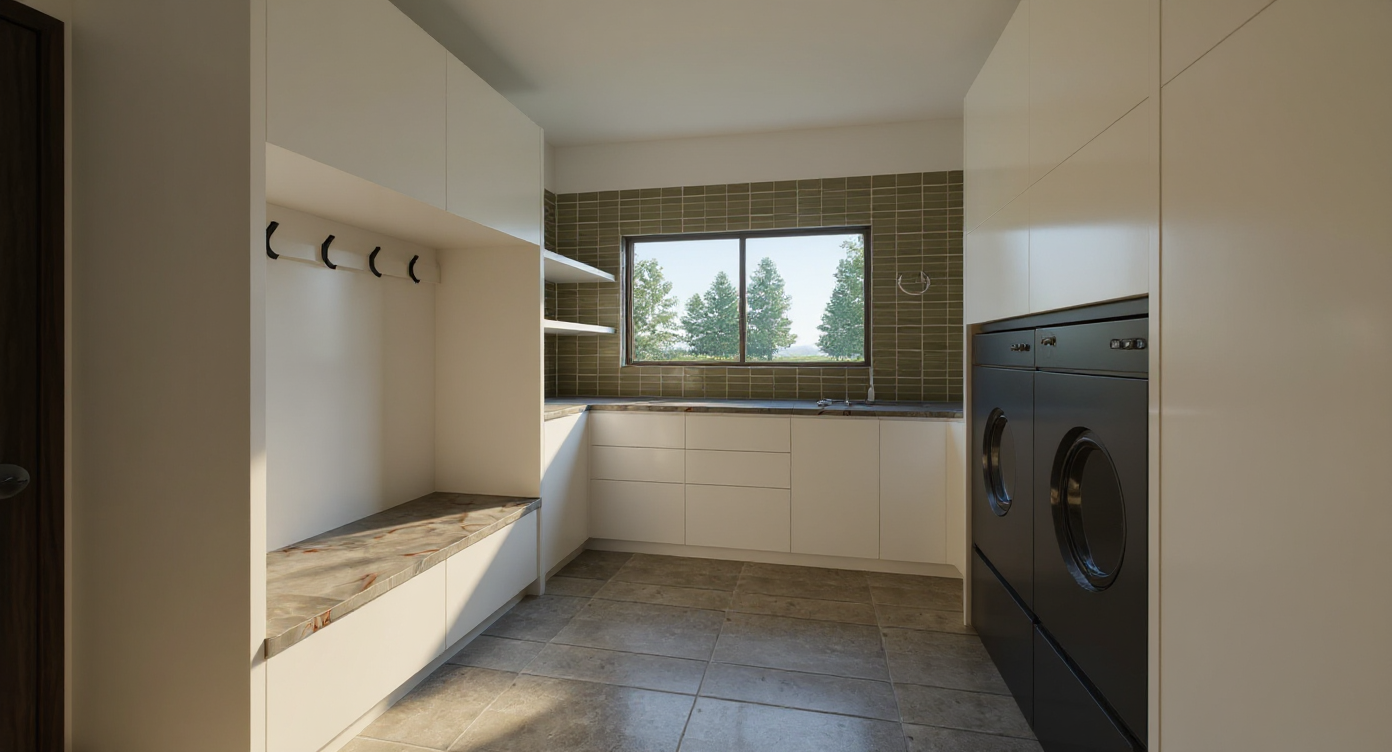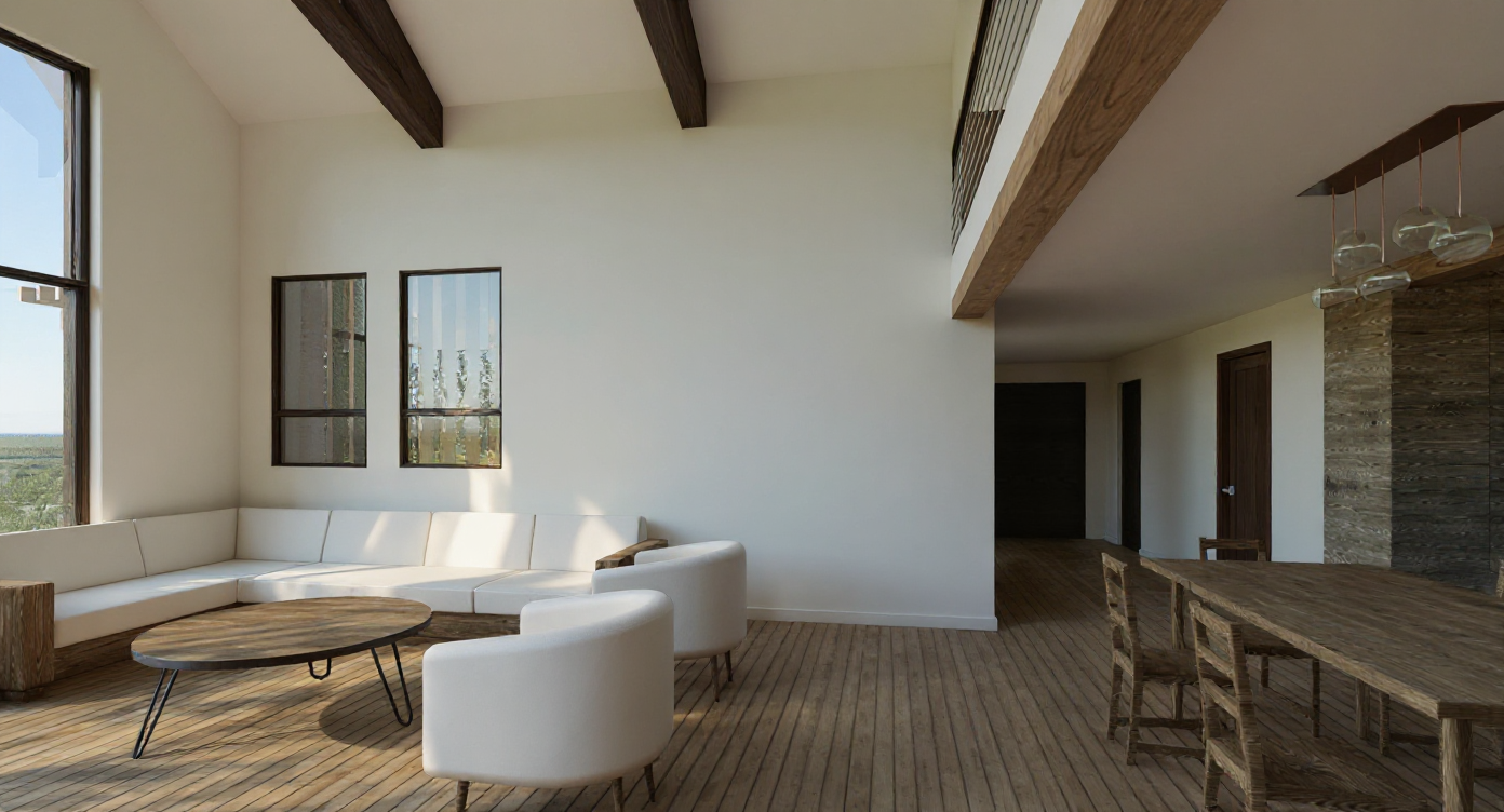 delete the lower building and replace with a driveway goes up the hill and connects to the existing driveway