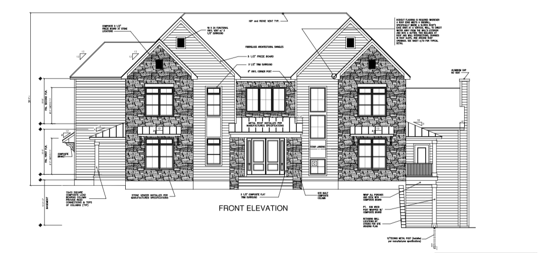 render this with white brick in stone sections and the use white clapboard siding
