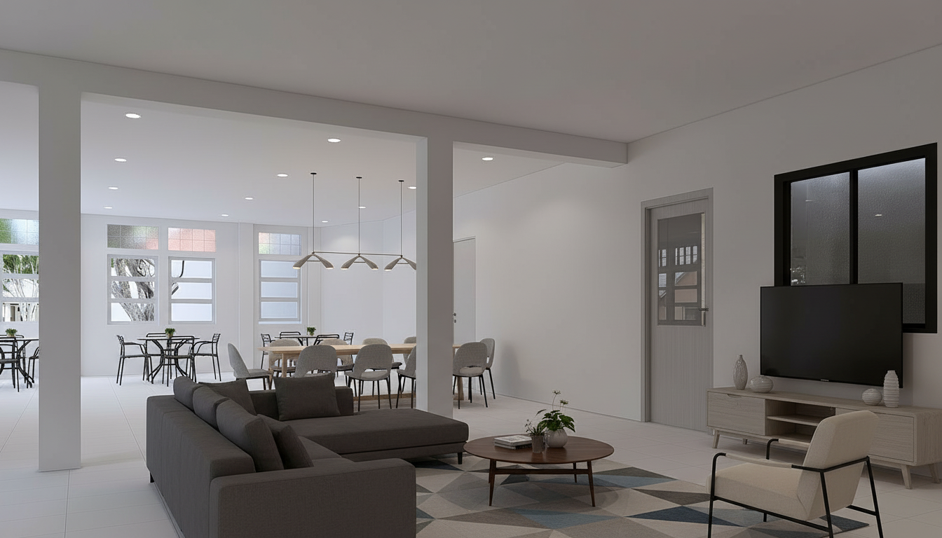 re render using same materials but more detailed add warm sunlight coming only from the window also make the kitchen more lively by adding some appliances ustensils like knives on a magnet bar a toaster a mixer a teapot that should be enough