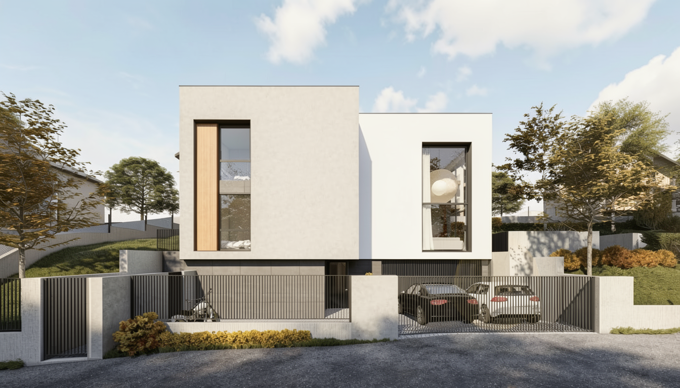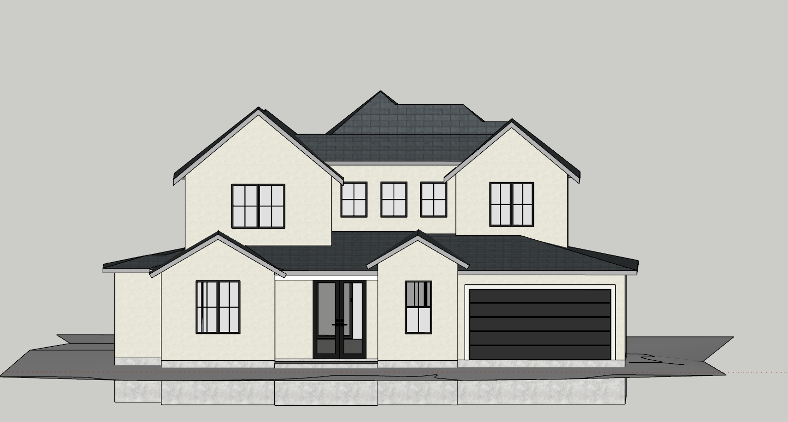 add stone and stucco in warm color tones with wood tones on the front door and garage