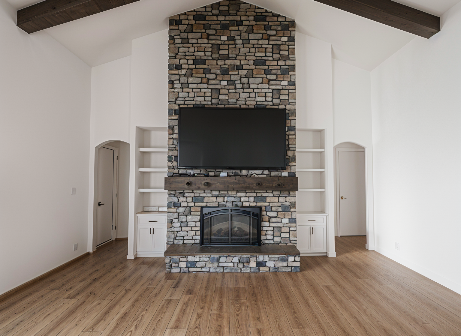 add arch openings above the book cases add a rustic beam header to the top of the bookcases remove the beam above the arched doorways