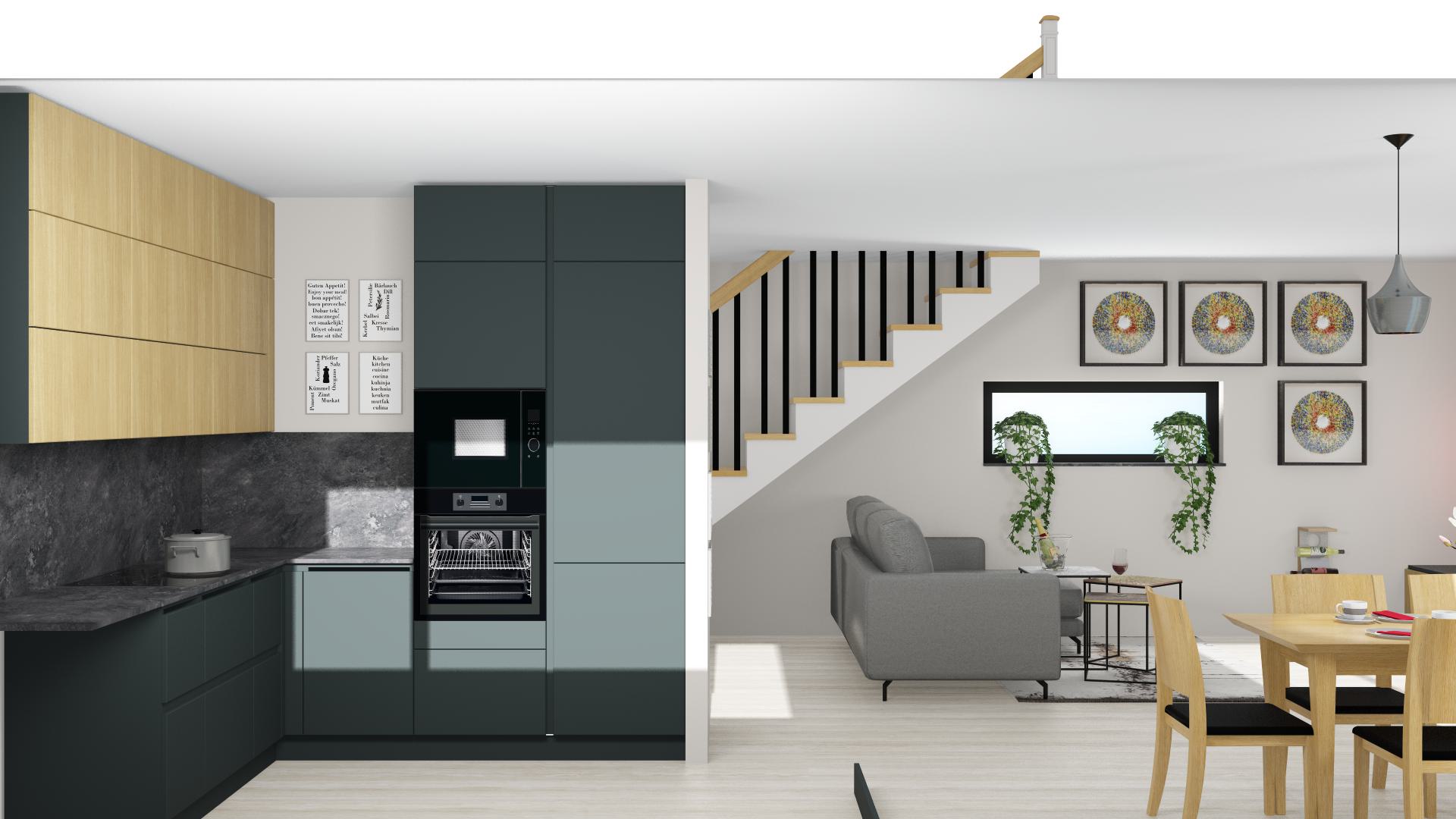 keep the colors keep the layout of the cabinets add a landscape outside the windows
