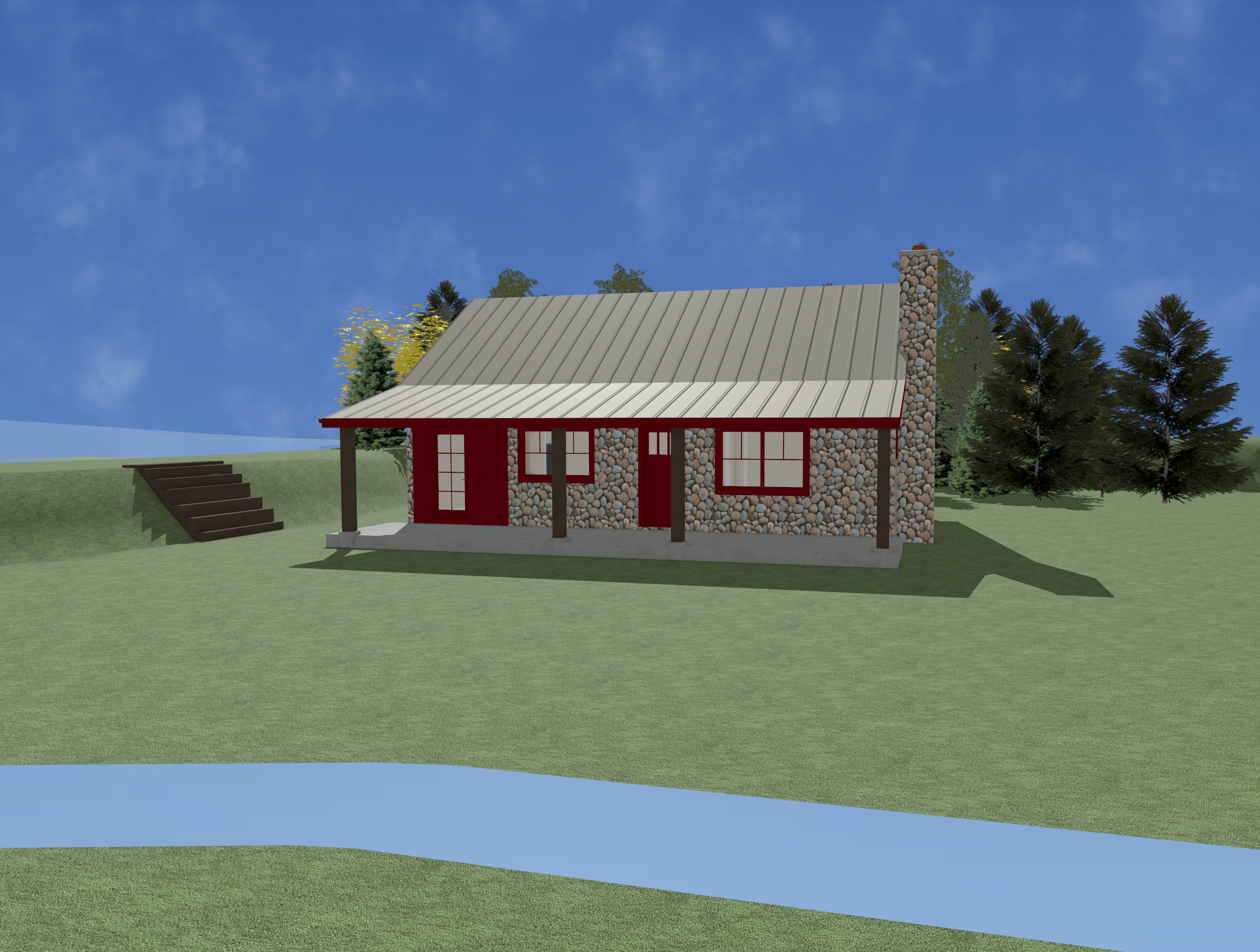 photorealistic rendering of this cabin in the forests of southwest colorado