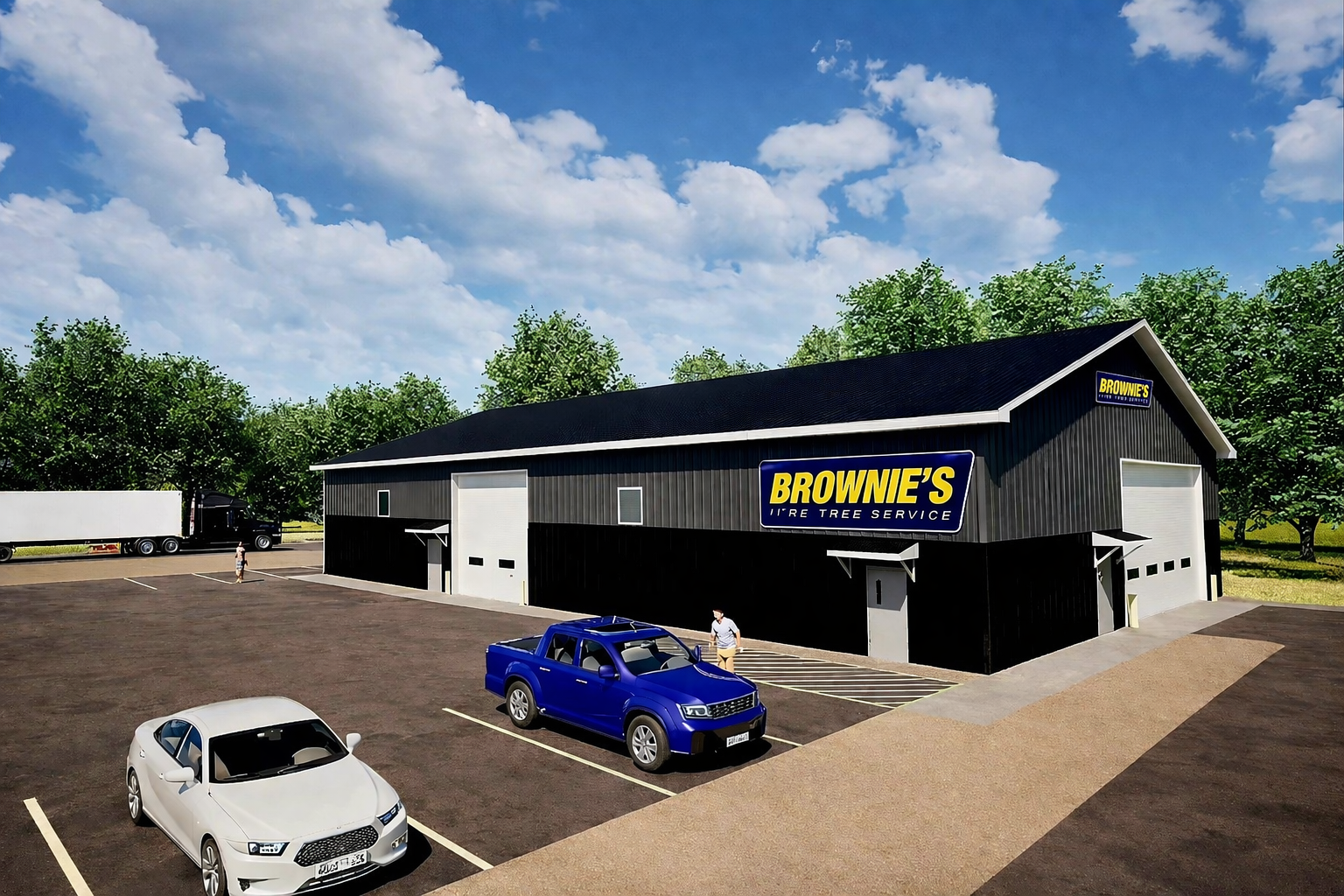 make this rendering look real and sharp and like a real photograph fix the brownies sign it should say tire service not tree service lastly change nothing else absolutely nothing else keep all other details exactly how they are