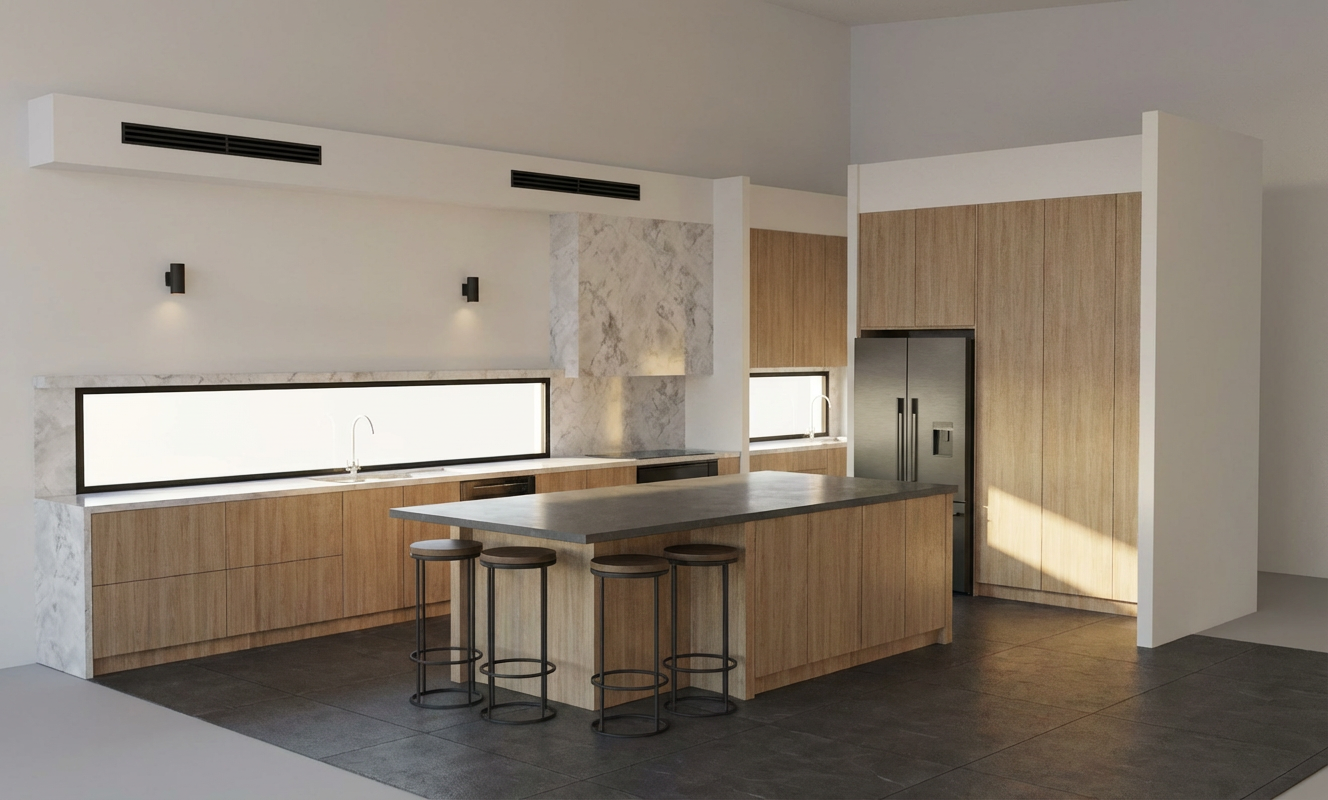 exterior shot transform this architectural visualization into a clean minimalist graphic style simplify details while preserving the building forms perspective and composition use soft neutral colors and subtle textures keep a calm and airy atmosphere reduce environmental clutter and represent people and vegetation in a minimal stylized way the final image should look like a modern elegant architectural illustration with a sophisticated minimalist aesthetic architecture