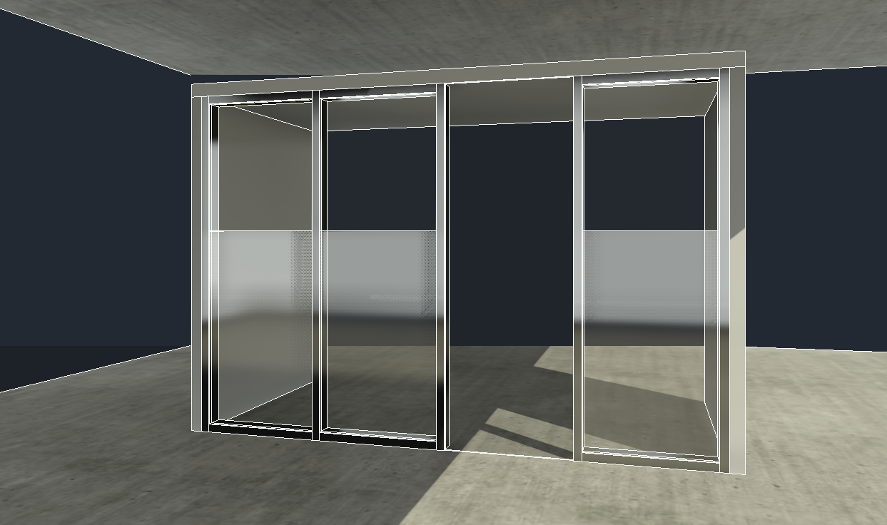 mur vitr e avec porte vitr e bureau et panneau s parateur de chaque c t des murs structure de b ton au sol et au plafond visible l int rieur