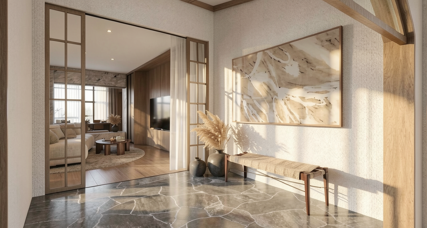 convert this floor plan into a realistic isometric 3d view of a full house show the space from an elevated angle with furniture walls and details visible un mobilier pur doux ne ambiance g n rale chaleureuse use the same furniture as shows on the plan do not change the orientation of the floorplan