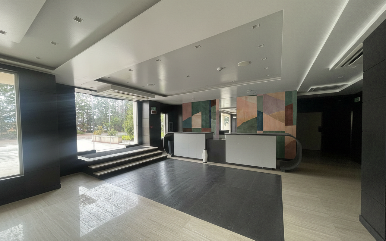 international style interior shot create a photorealistic interior visualization based strictly on the provided image do not add remove or modify any elements materials furniture or layout do not add any new windows anywhere else do not place windows on other walls ensure the sunlight reflection on the glass is smooth and continuous without any grid lines or breaks maintain correct scale and proportions use physically accurate lighting with soft global illumination all lamps are turned on and emit warm light with visible light sources keep natural exposure consistent with the original image use high quality realistic textures with precise detail ensure accurate reflections and soft shadows do not apply any stylization or artistic effects the result must be strictly photorealistic and match the original scene as closely as possible add four evenly spaced surface mounted white four circle spotlights to the ceiling with a simple modern design and make sure the lights are turned on emitting soft natural lighting the railing should be silver stainless steel and the top handrail should be made of wood matching the floor with the same color texture and finish as the flooring on the right side there is a framed mirror and on the left side there is a framed tv ceilimng is white add sunlight reflections architecture