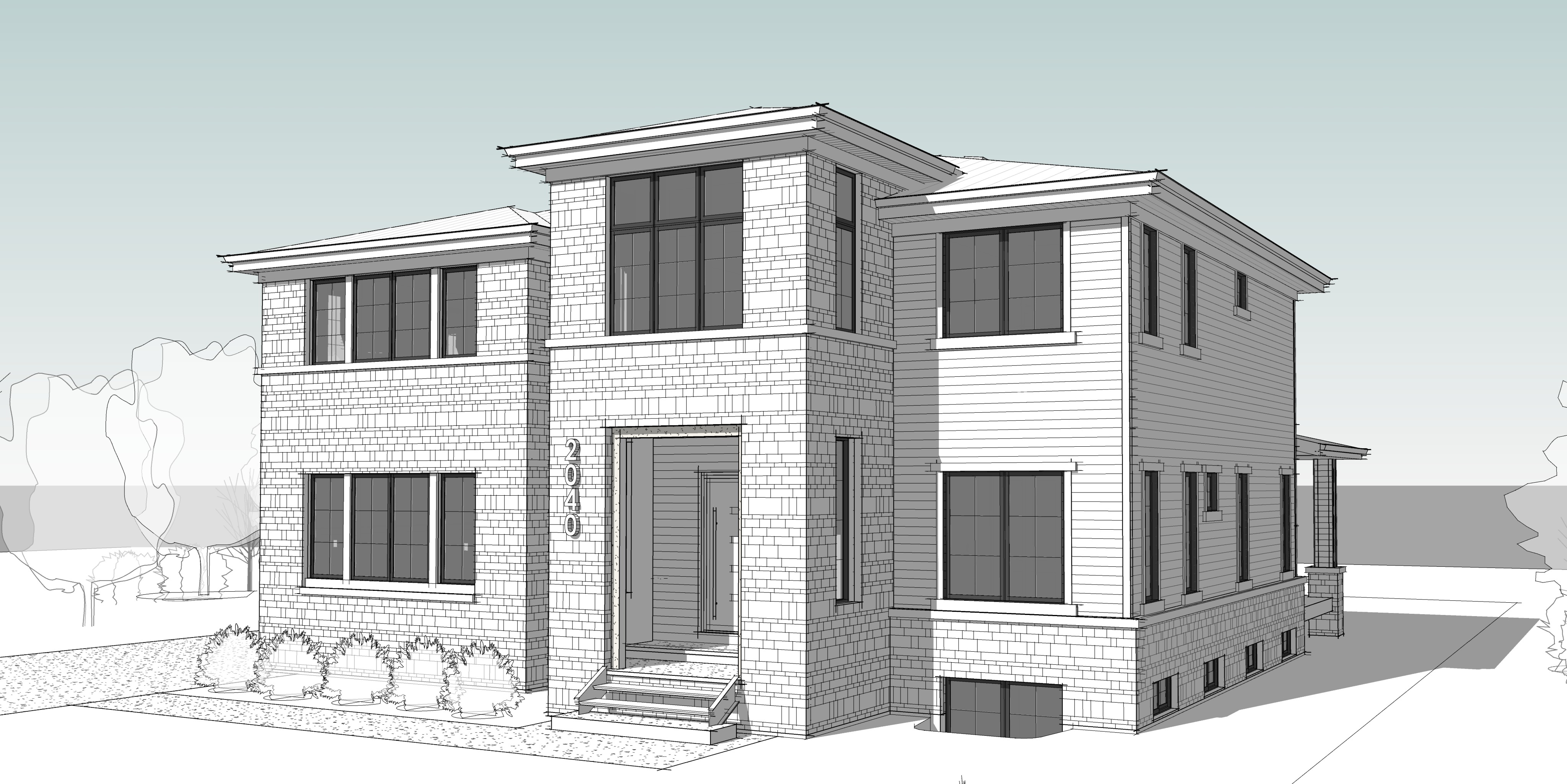 suburban setting noon sunny day with few clouds