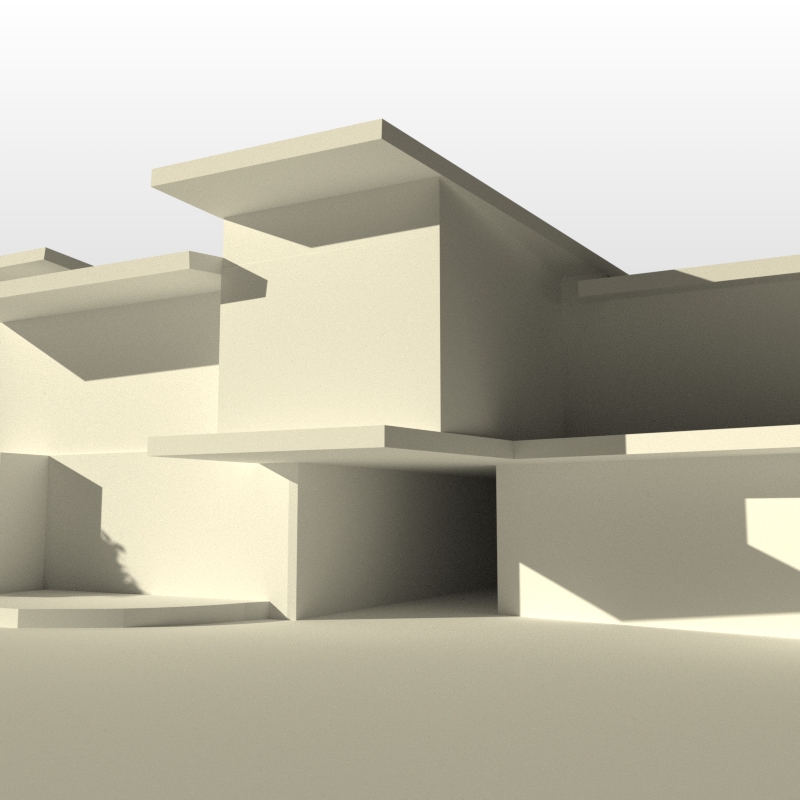 exterior render of a modern distant misty green and brown lanscapethe building features smooth walls large glass windows grey roof panels the structure forested green and brown soft morning light filters through the mist creating a calm and airy watercolor illustration aesthetic with pastel tones gentle shadows and a paper textured finish