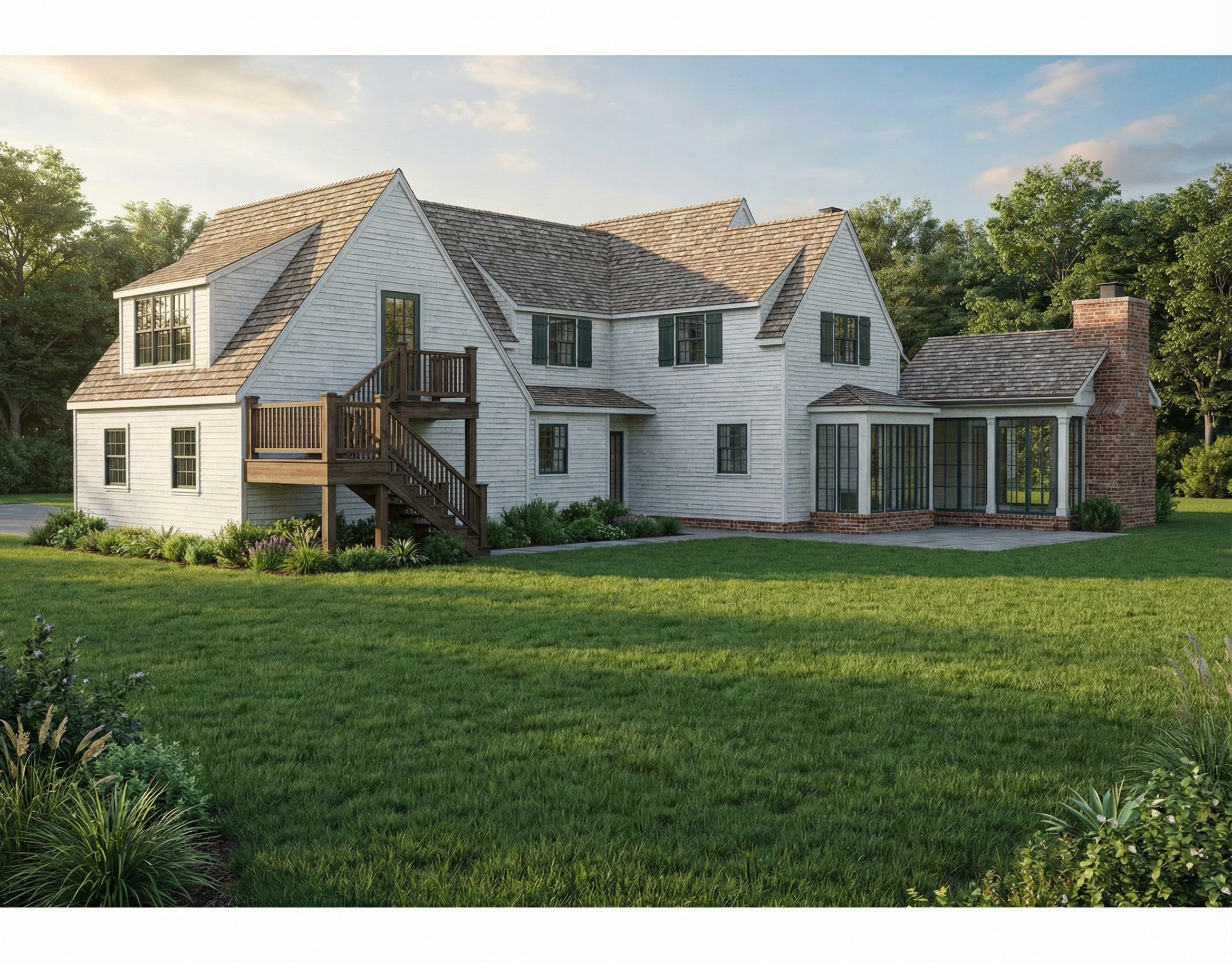 white brick black wood with a concrete driveway and fencing no grass mid day