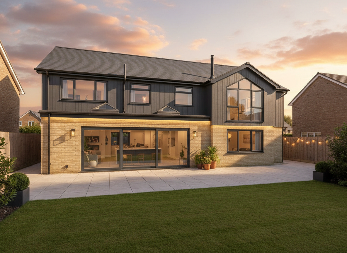 use the input image as a fixed architectural model do not modify any geometry proportions materials hierarchy lighting weather people or composition on the ground floor curved fa ade panels only replace the surface finish with brush hammered concrete texture fine linear hammered striations subtle relief matte mineral appearance keep the same olive green pigmented tone all upper panel levels remain sandblasted finish no other changes